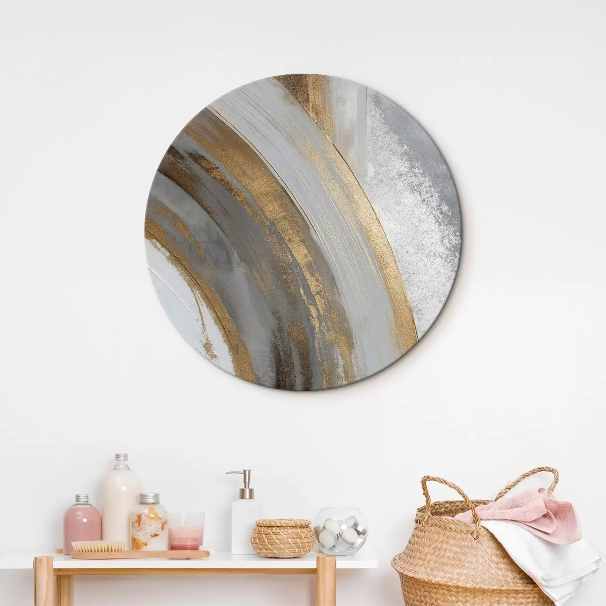 Cuadros redondos Semicírculos abstractos grises y amarillos r45809