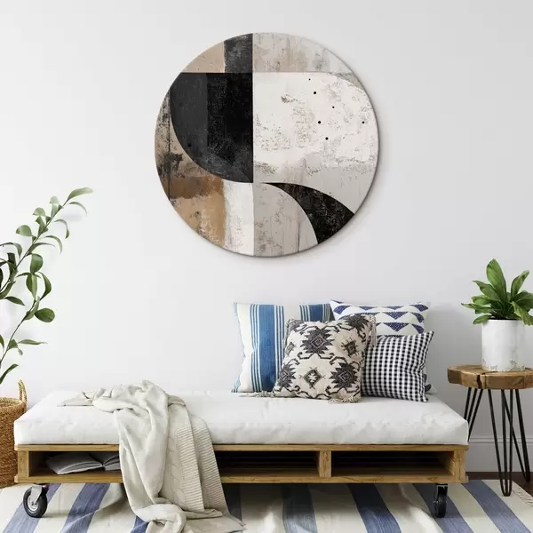 Cuadros redondos Formas geométricas en tonos beige y negro r45811