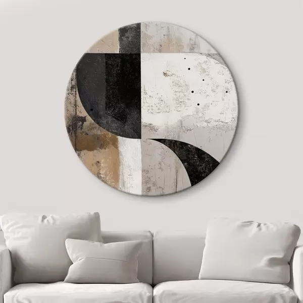 Cuadros redondos Formas geométricas en tonos beige y negro r45811