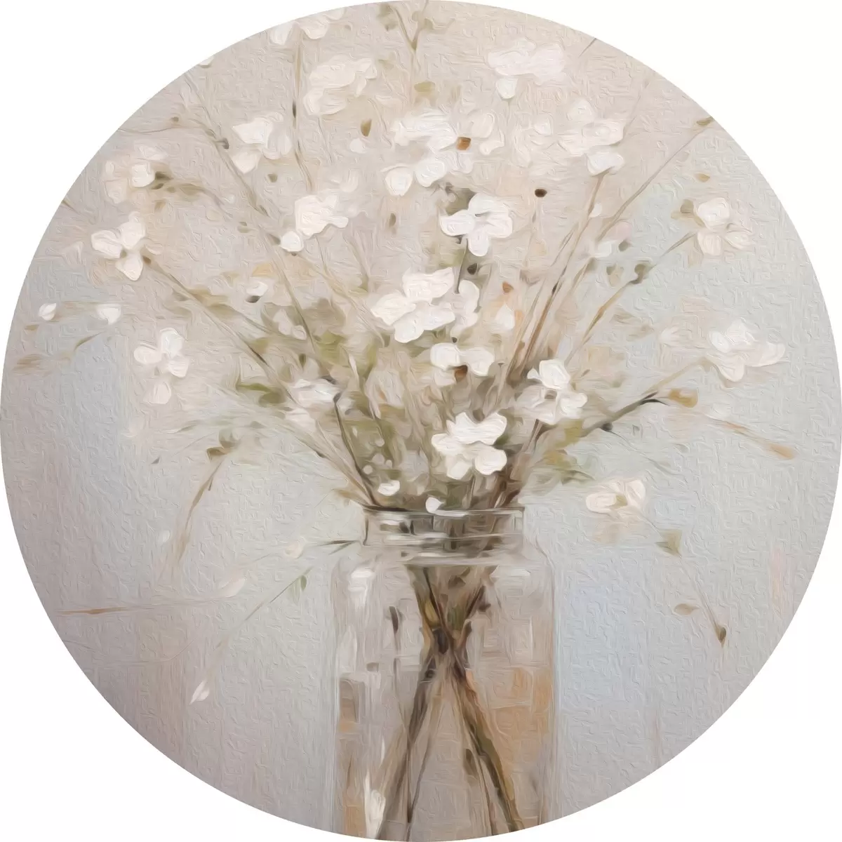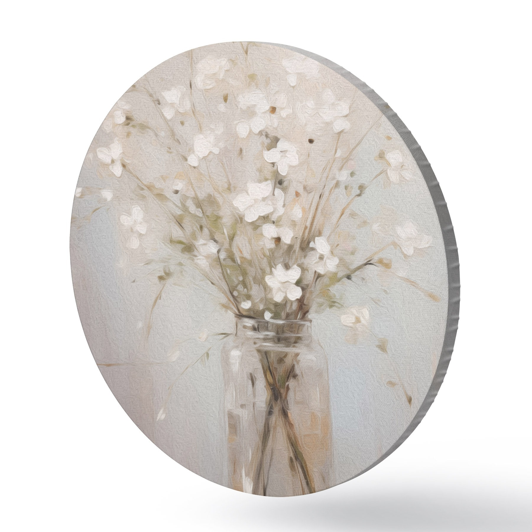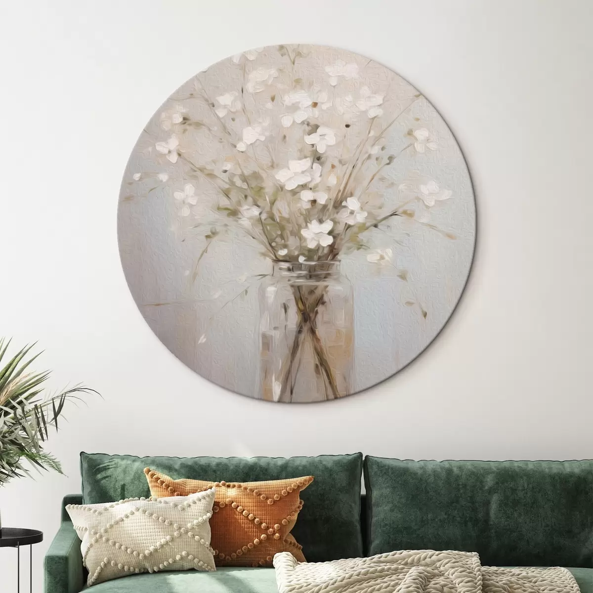Cuadros redondos Un ramo de flores blancas en un jarrón de cristal transparente r45814