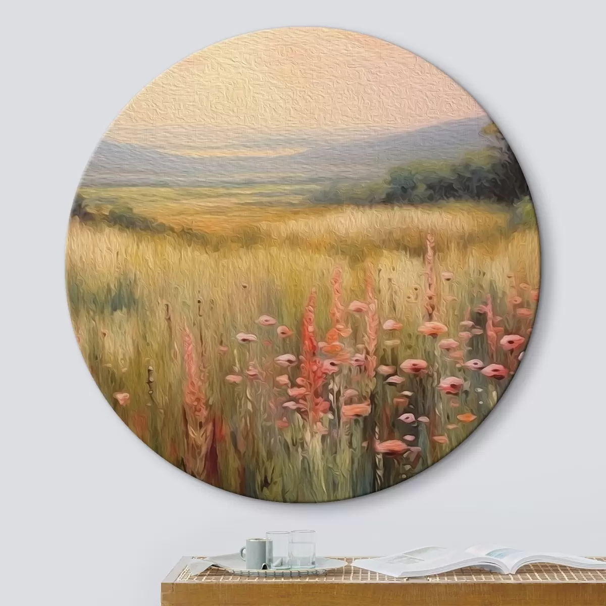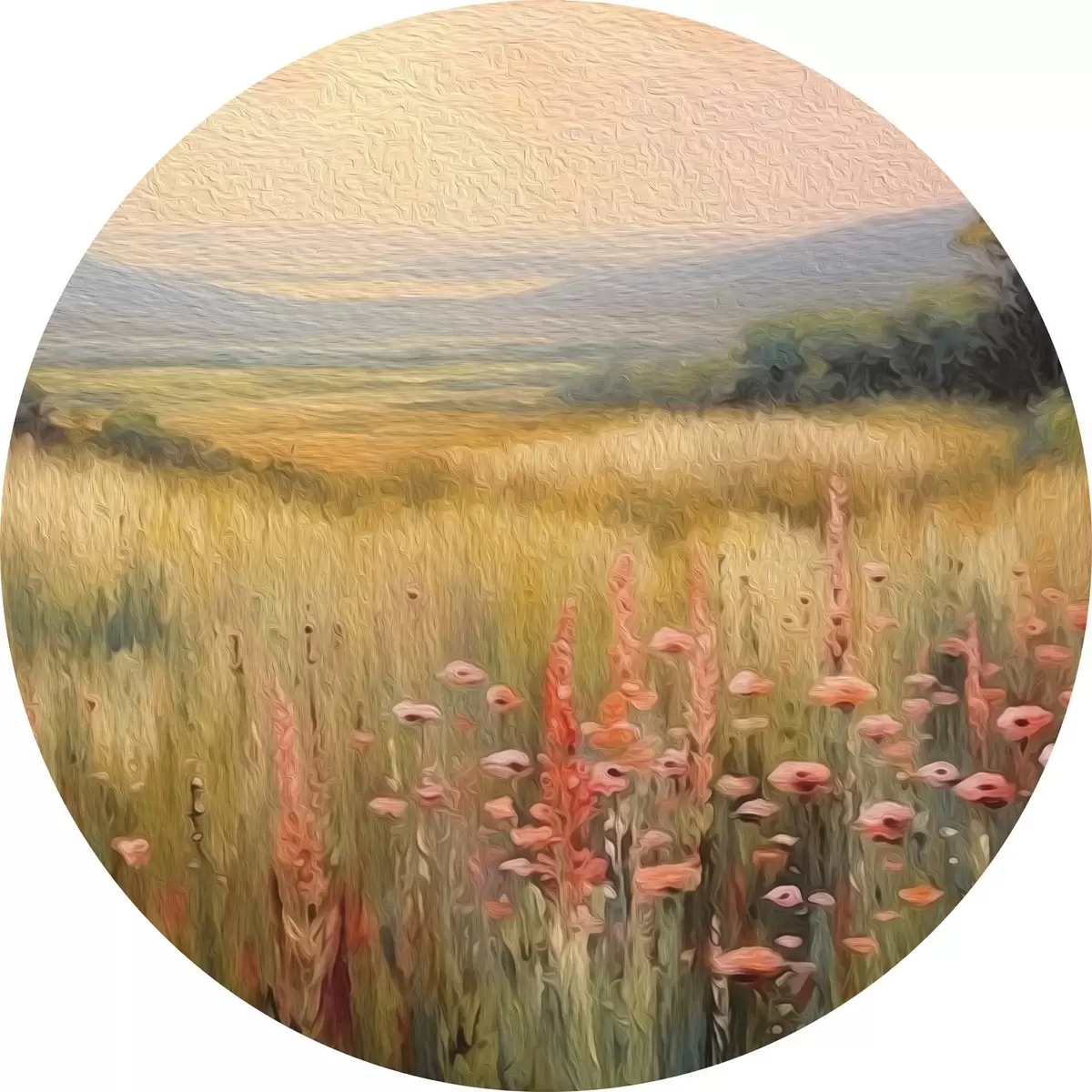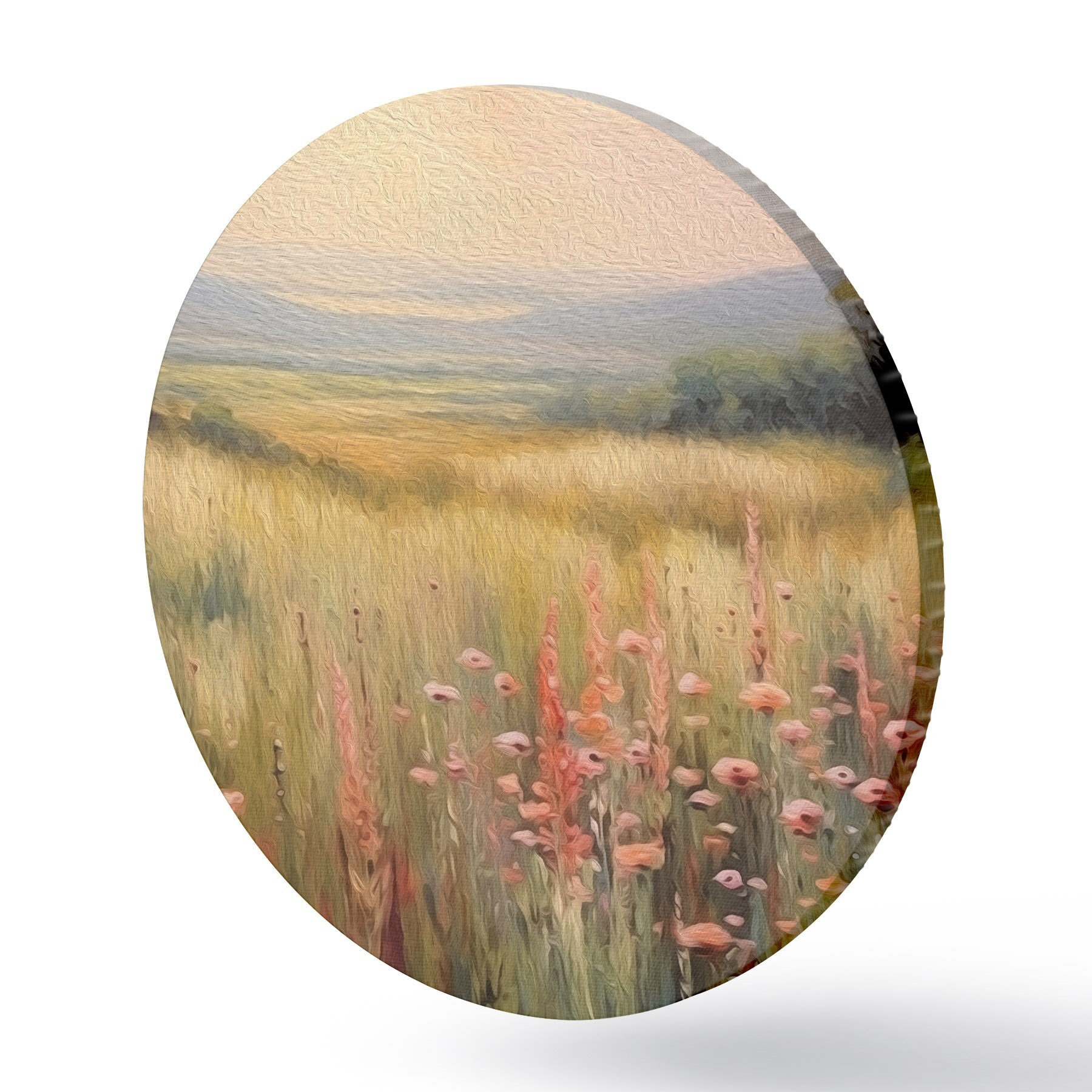 Cuadros redondos Paisaje campestre con flores al atardecer r45818
