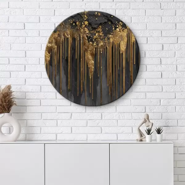 Cuadros redondos Corrientes doradas abstractas sobre un fondo oscuro r45823