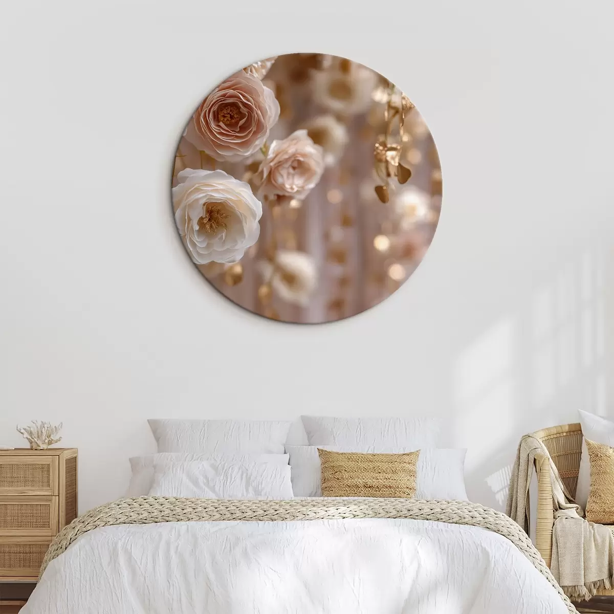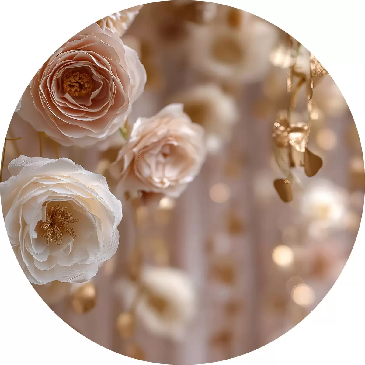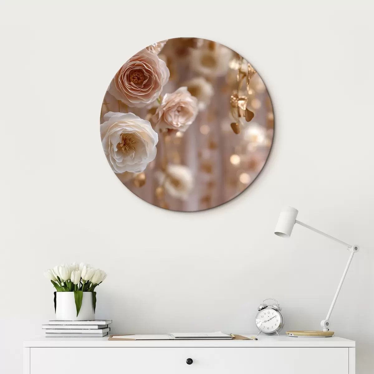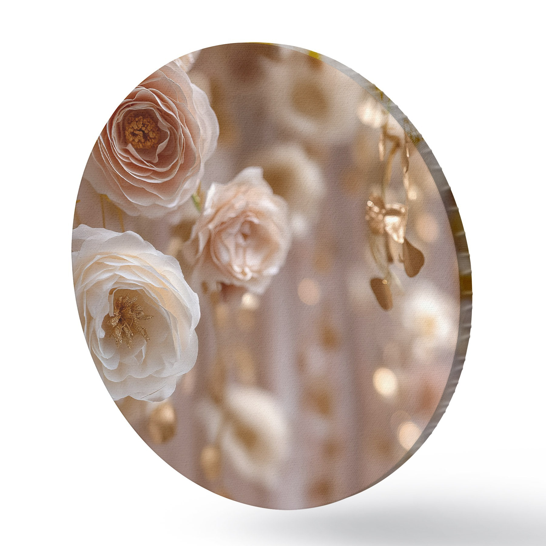 Cuadros redondos Rosas color crema con detalles dorados r45824