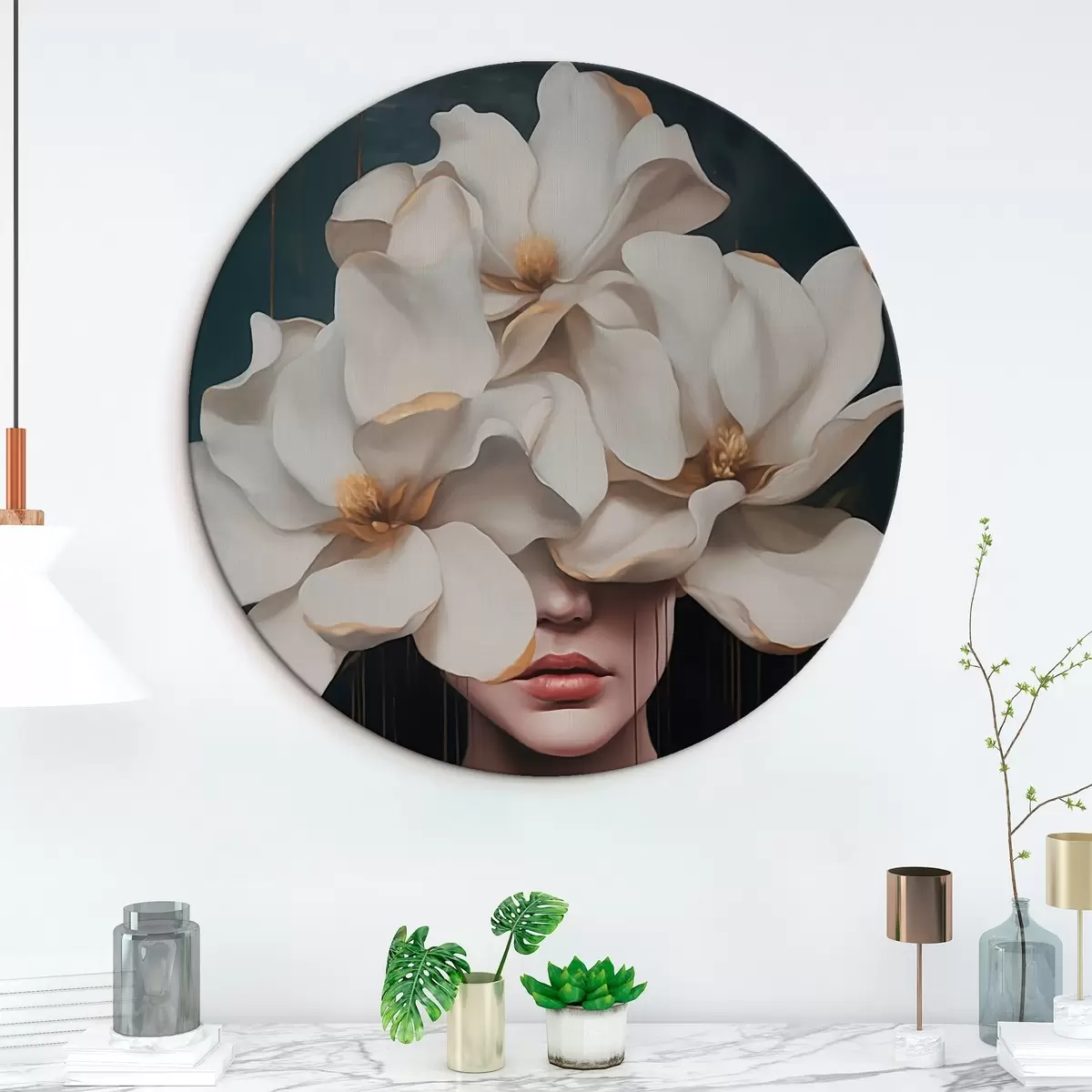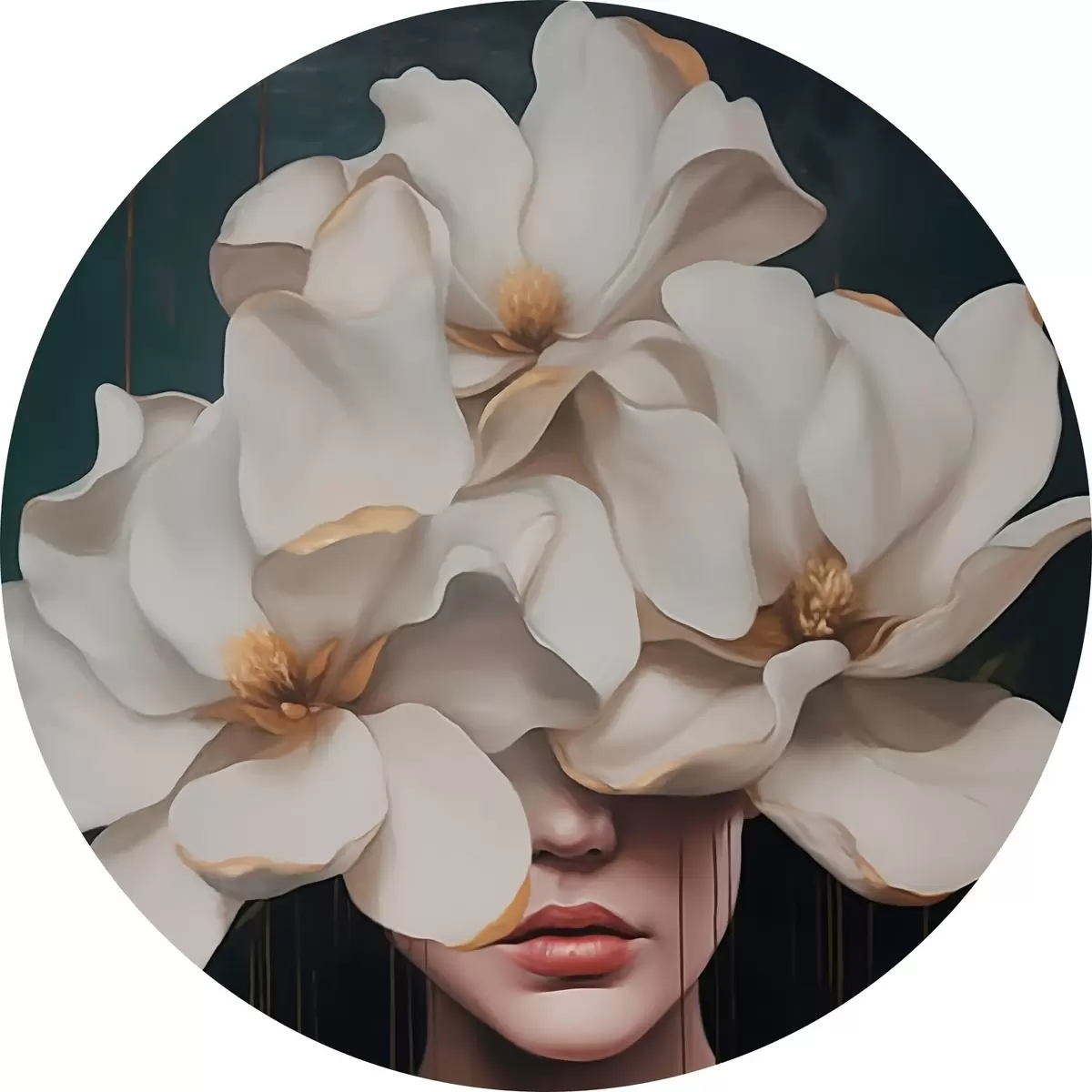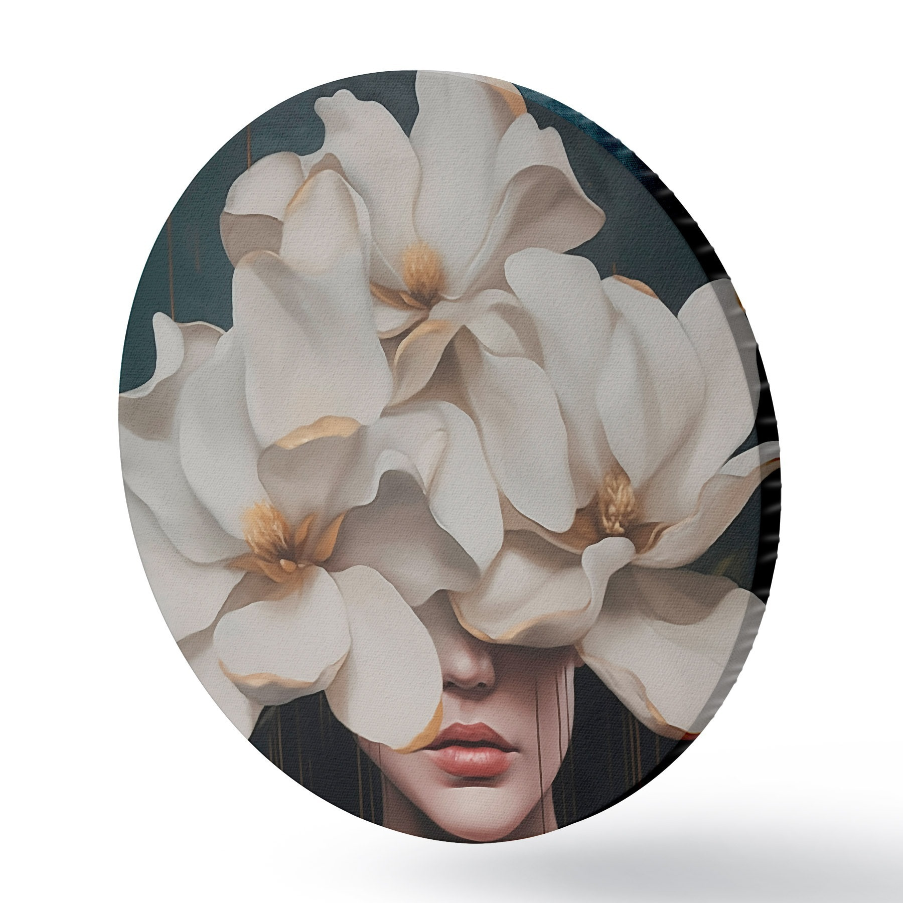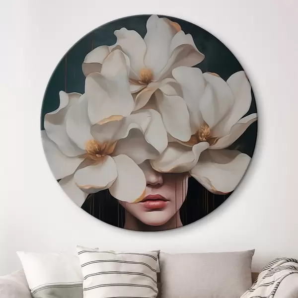 Cuadros redondos Mujer con flores blancas en la cabeza r45843