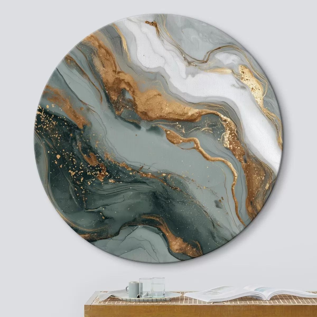 Cuadros redondos Abstracción con vetas verde oscuro y gris r45858
