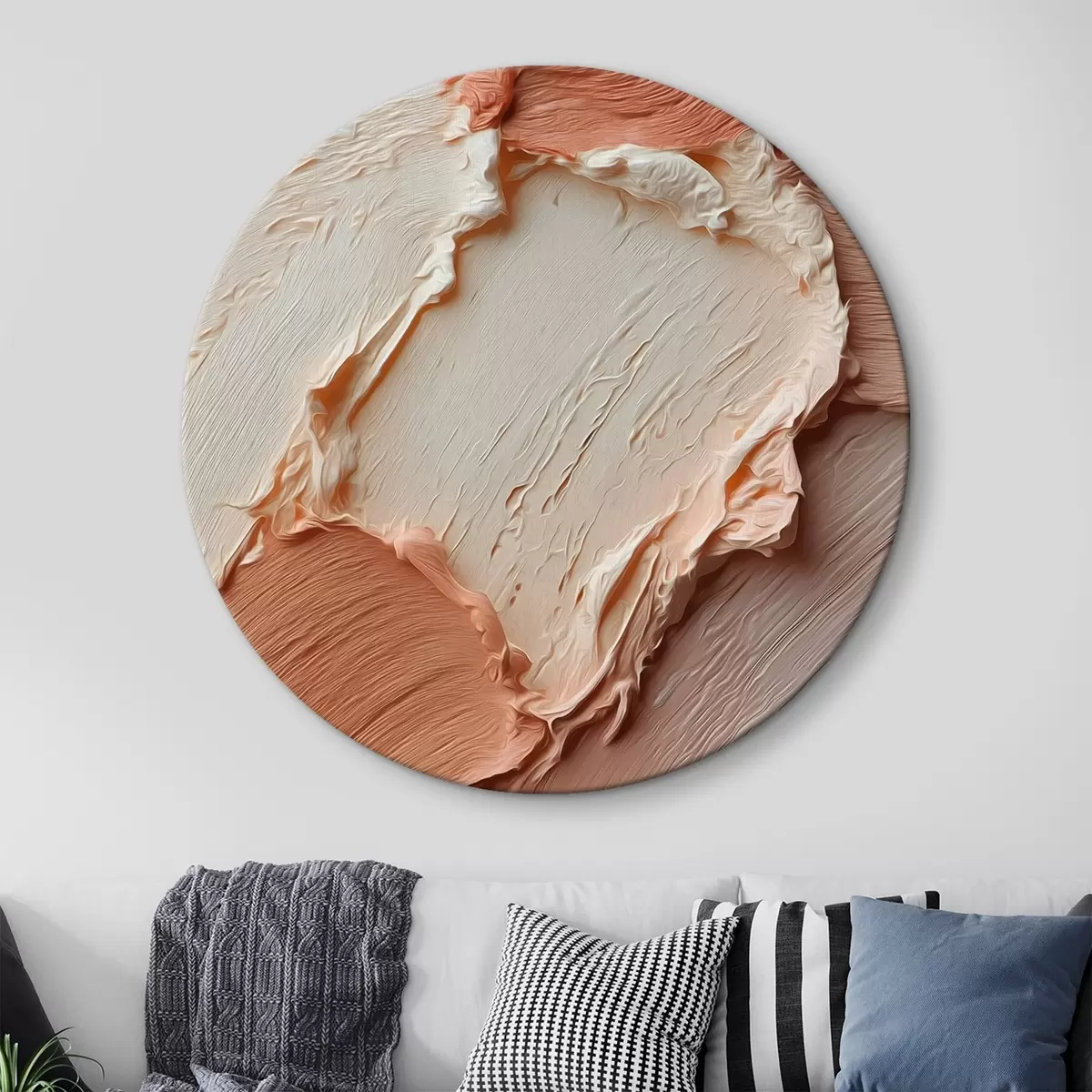 Cuadros redondos Pinceladas con textura crema-melocotón, impasto rico r45869