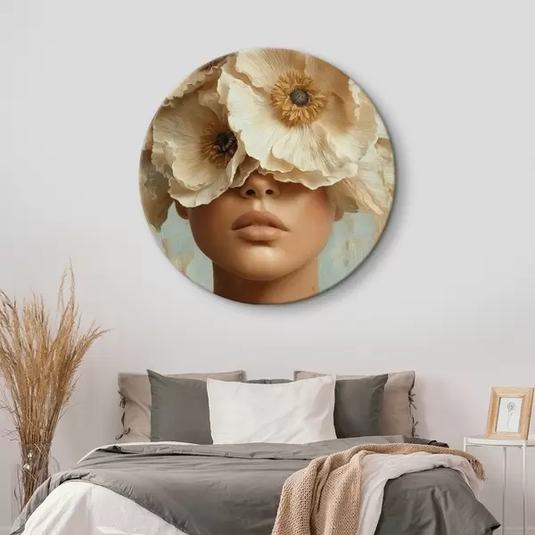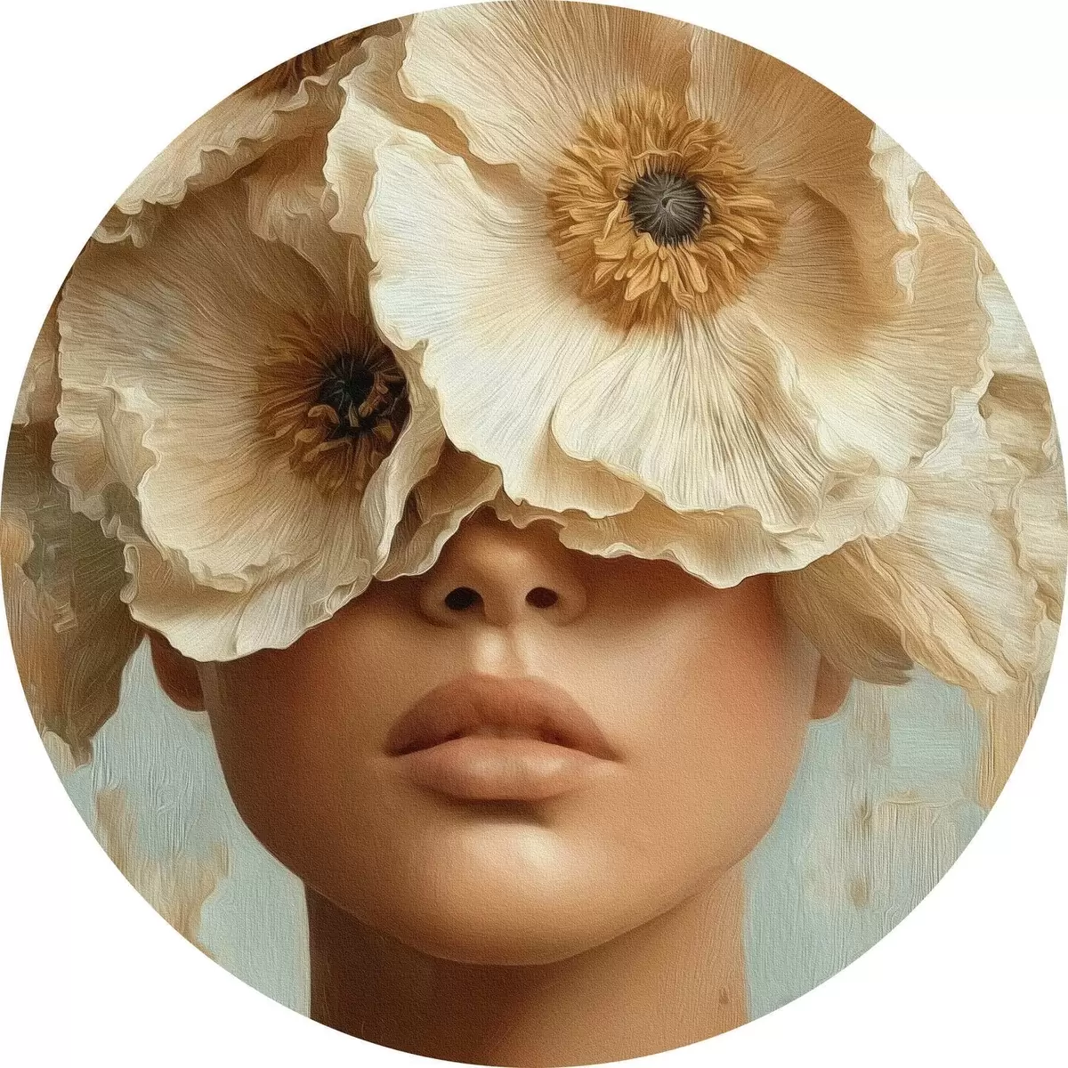 Cuadros redondos Retrato con flores beige cubriendo los ojos r45870