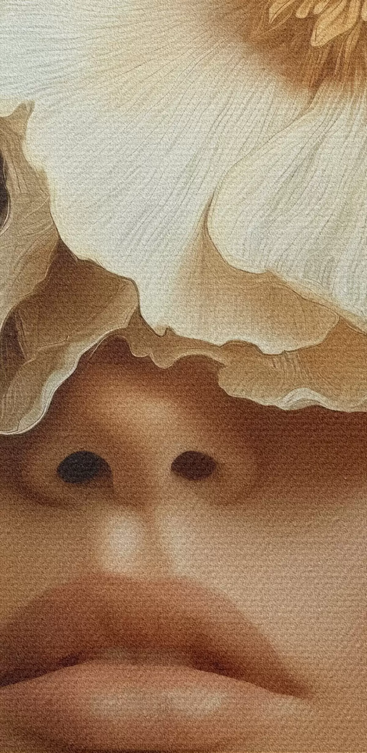 Foto Retrato con flores beige cubriendo los ojos Nr r45870