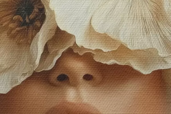 Foto Retrato con flores beige cubriendo los ojos Nr r45870