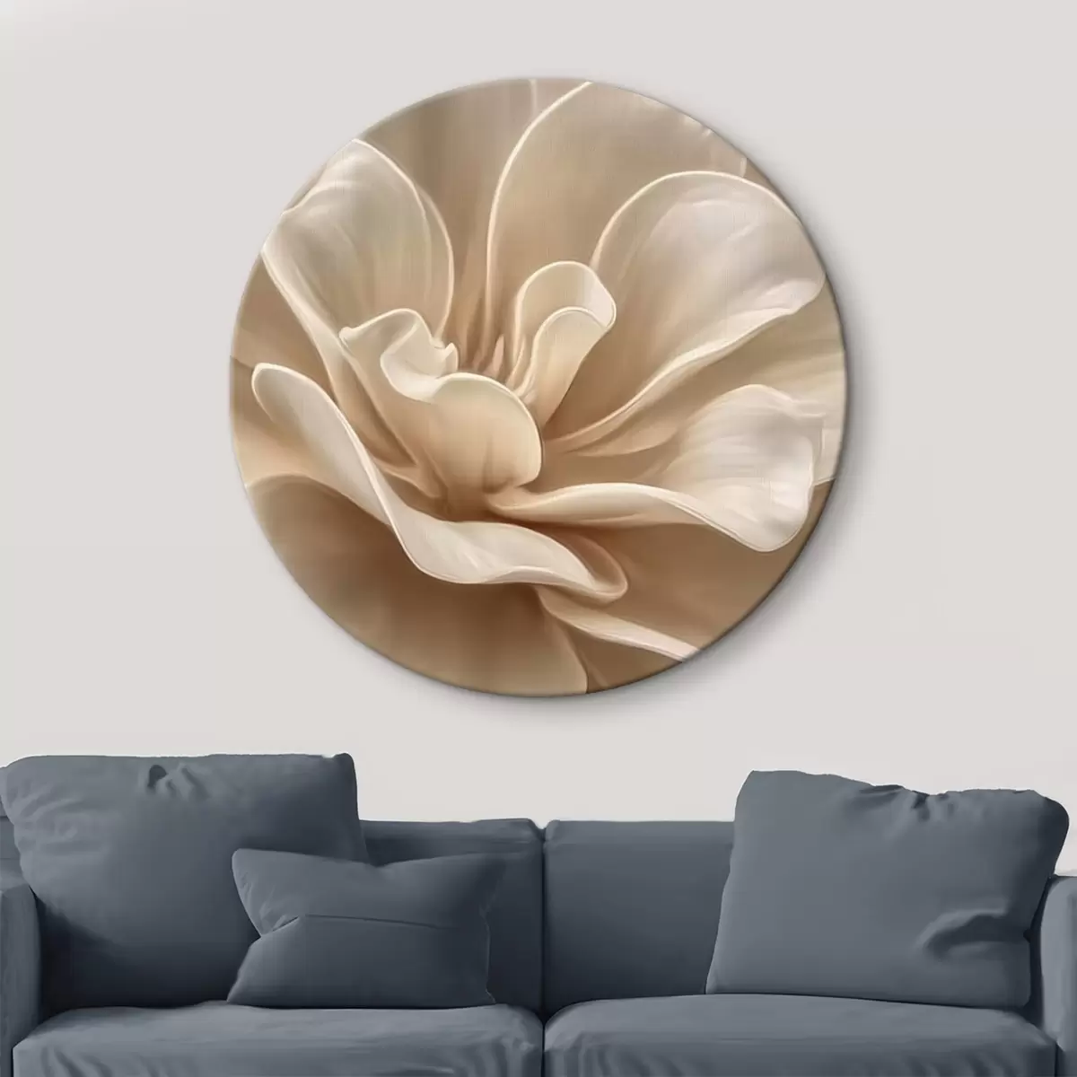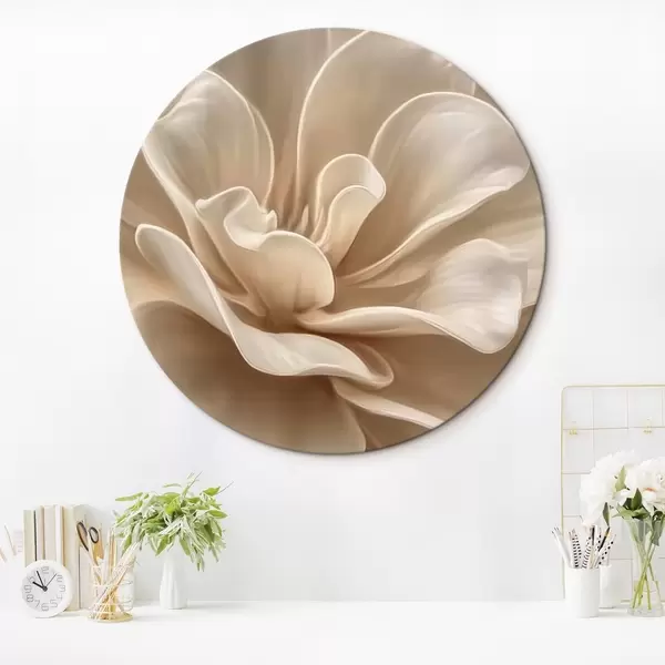 Cuadros redondos Flor grande de color crema, pétalos suaves macro r45874