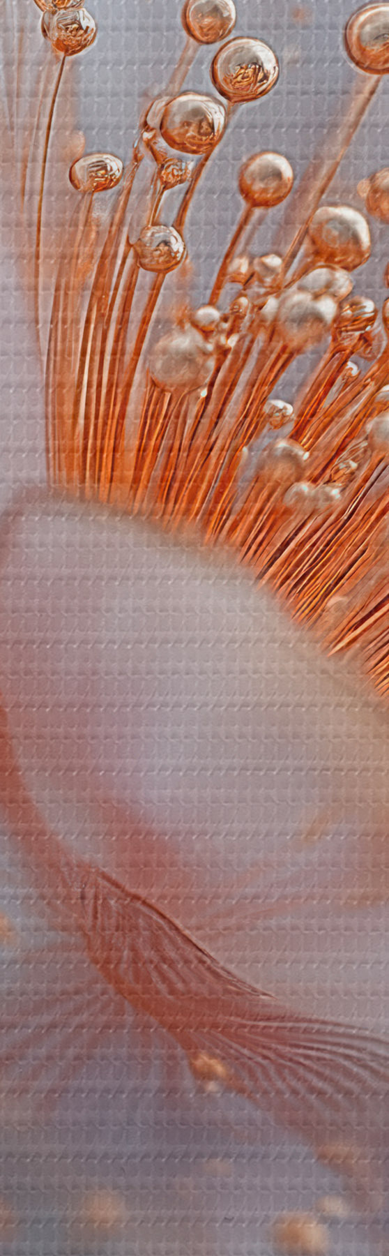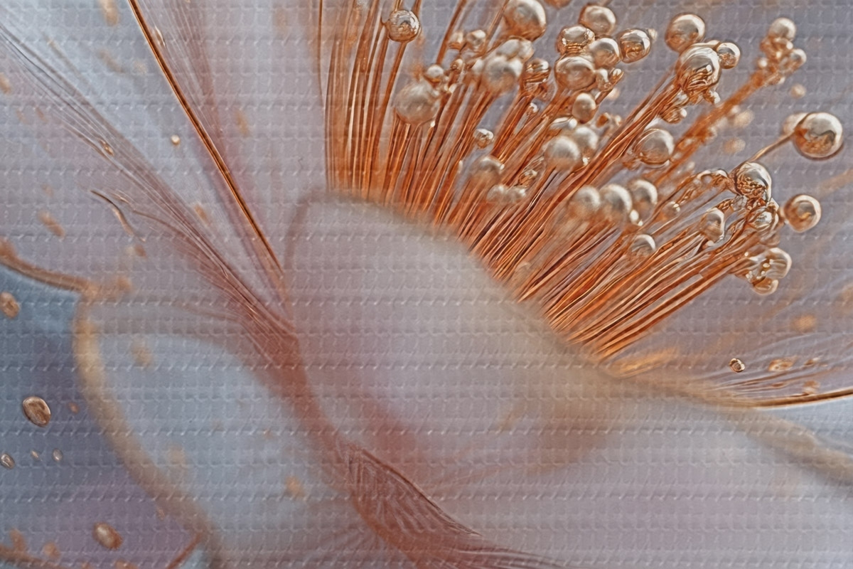 Foto Flor translúcida con estambres cobrizos sobre fondo azul Nr r45880