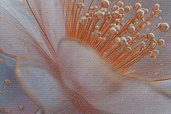 Foto Flor translúcida con estambres cobrizos sobre fondo azul Nr r45880