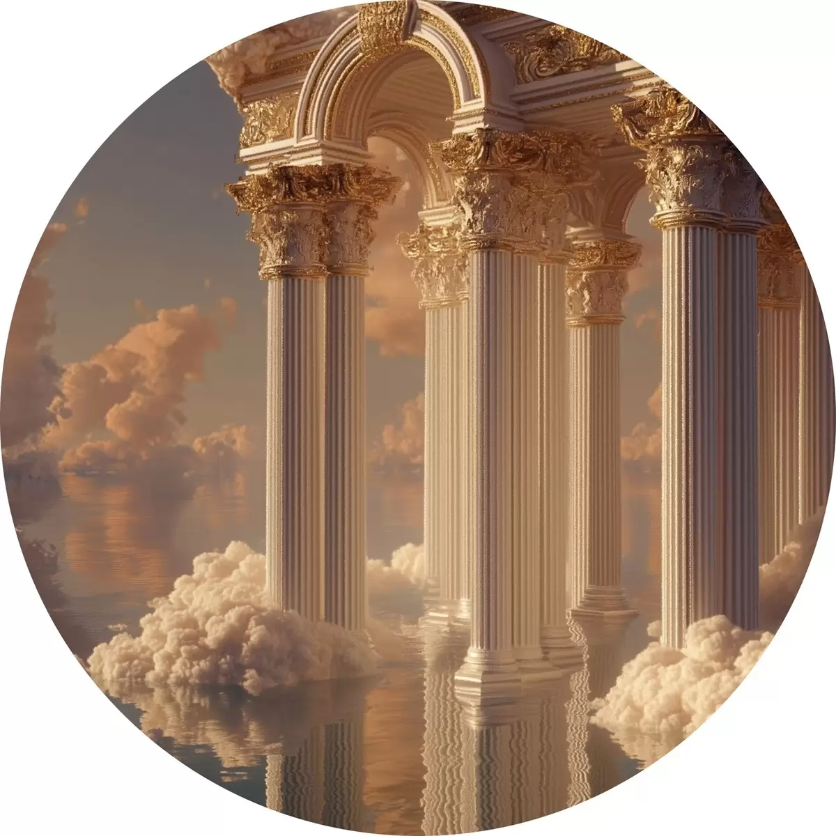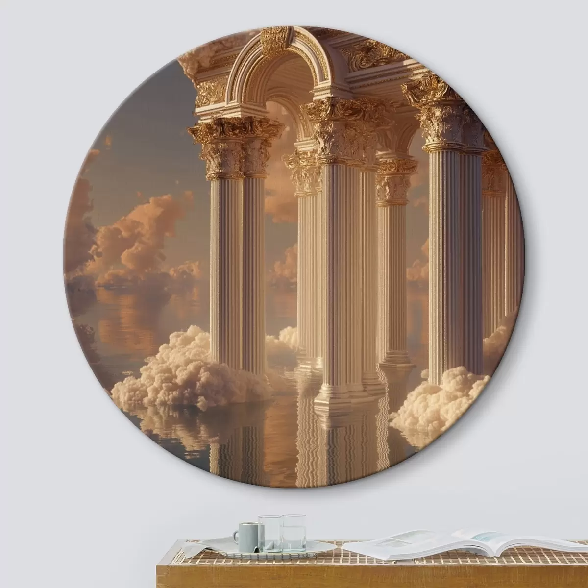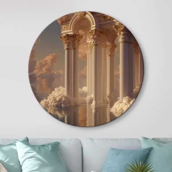 Cuadros redondos Columnas en las nubes, reflejos en el agua r45881