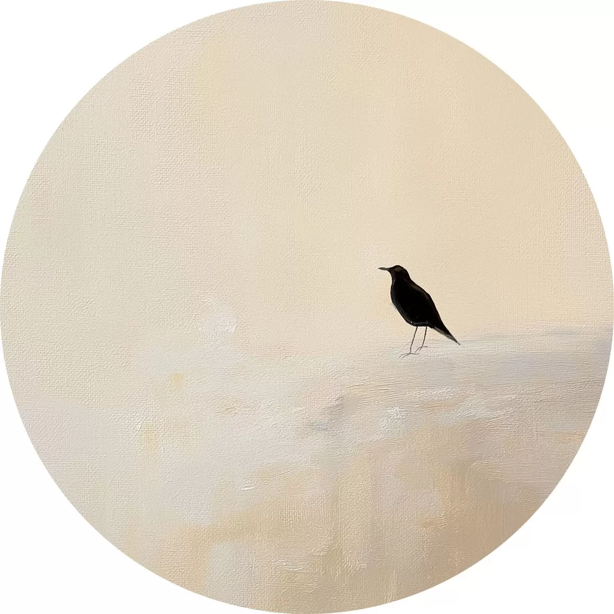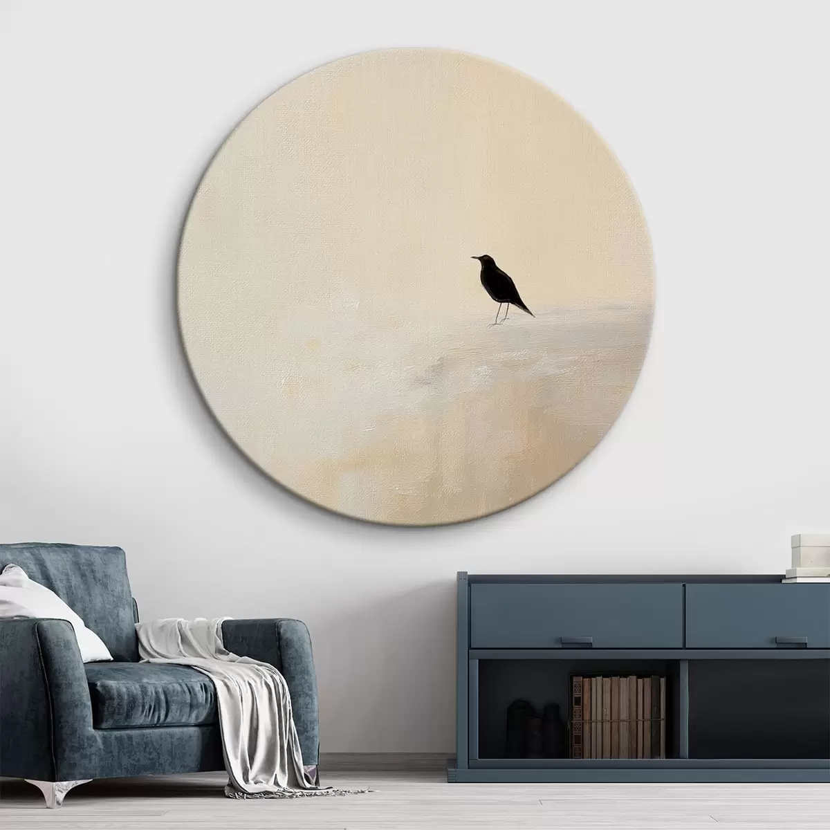 Cuadros redondos Pájaro solitario sobre un fondo beige cálido r45882