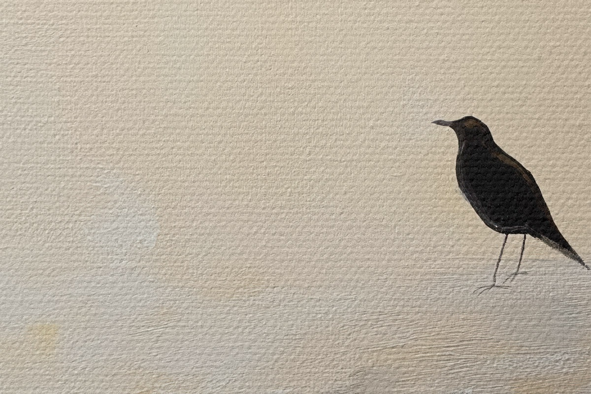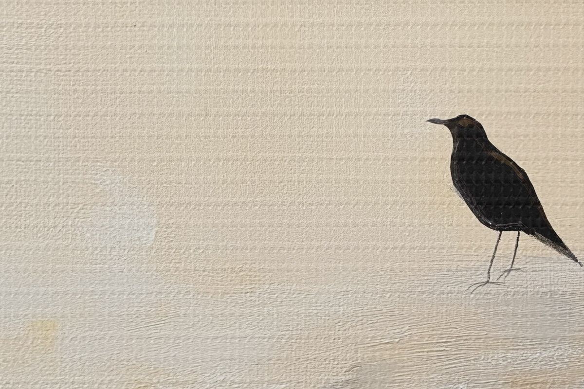 Foto Pájaro solitario sobre un fondo beige cálido Nr r45882