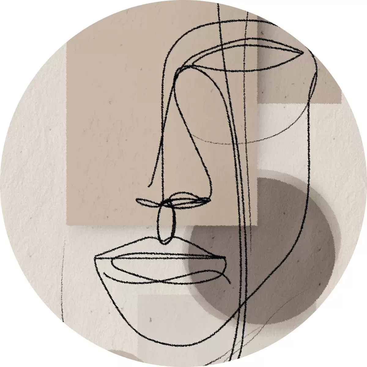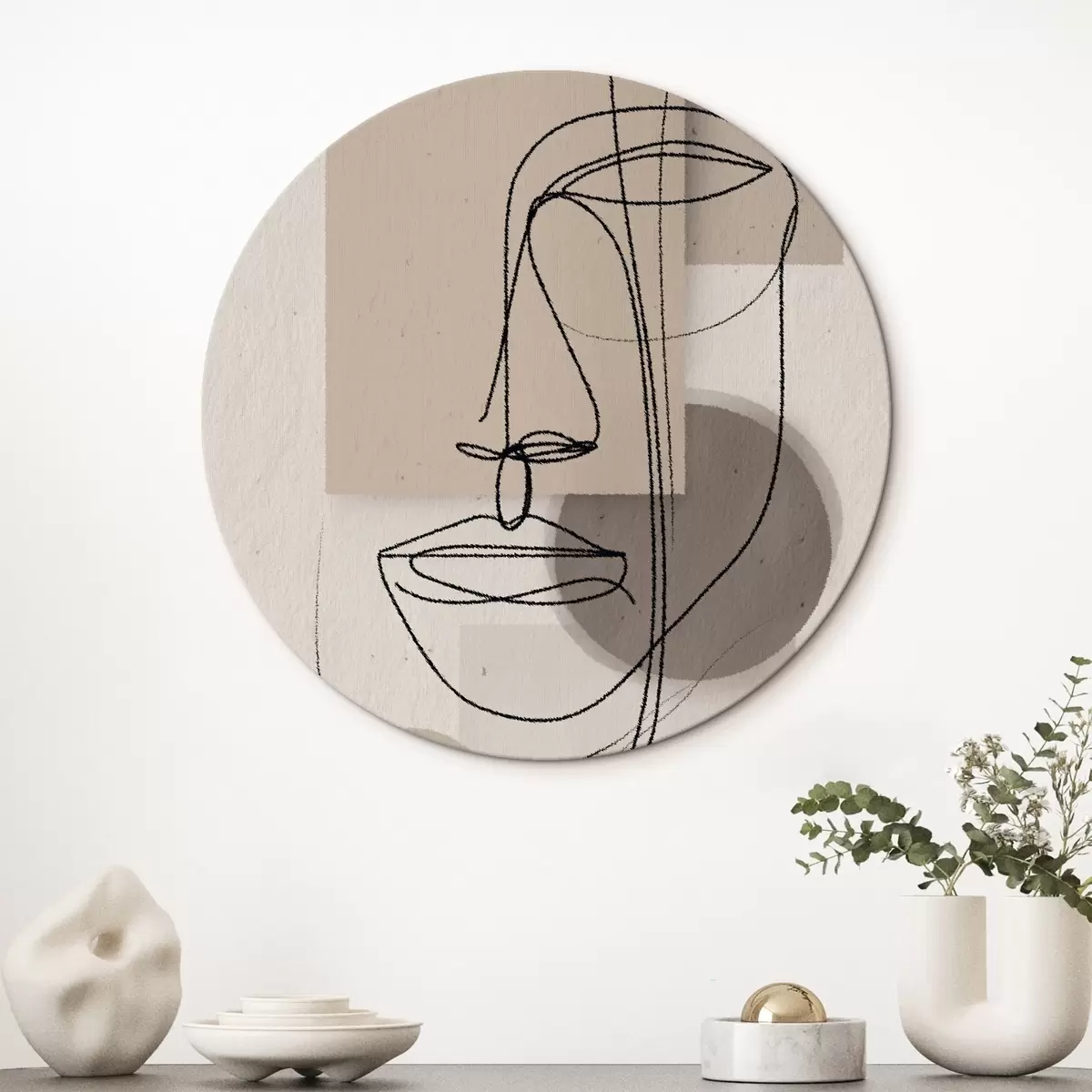 Cuadros redondos Retrato en línea sobre formas geométricas beige r45886