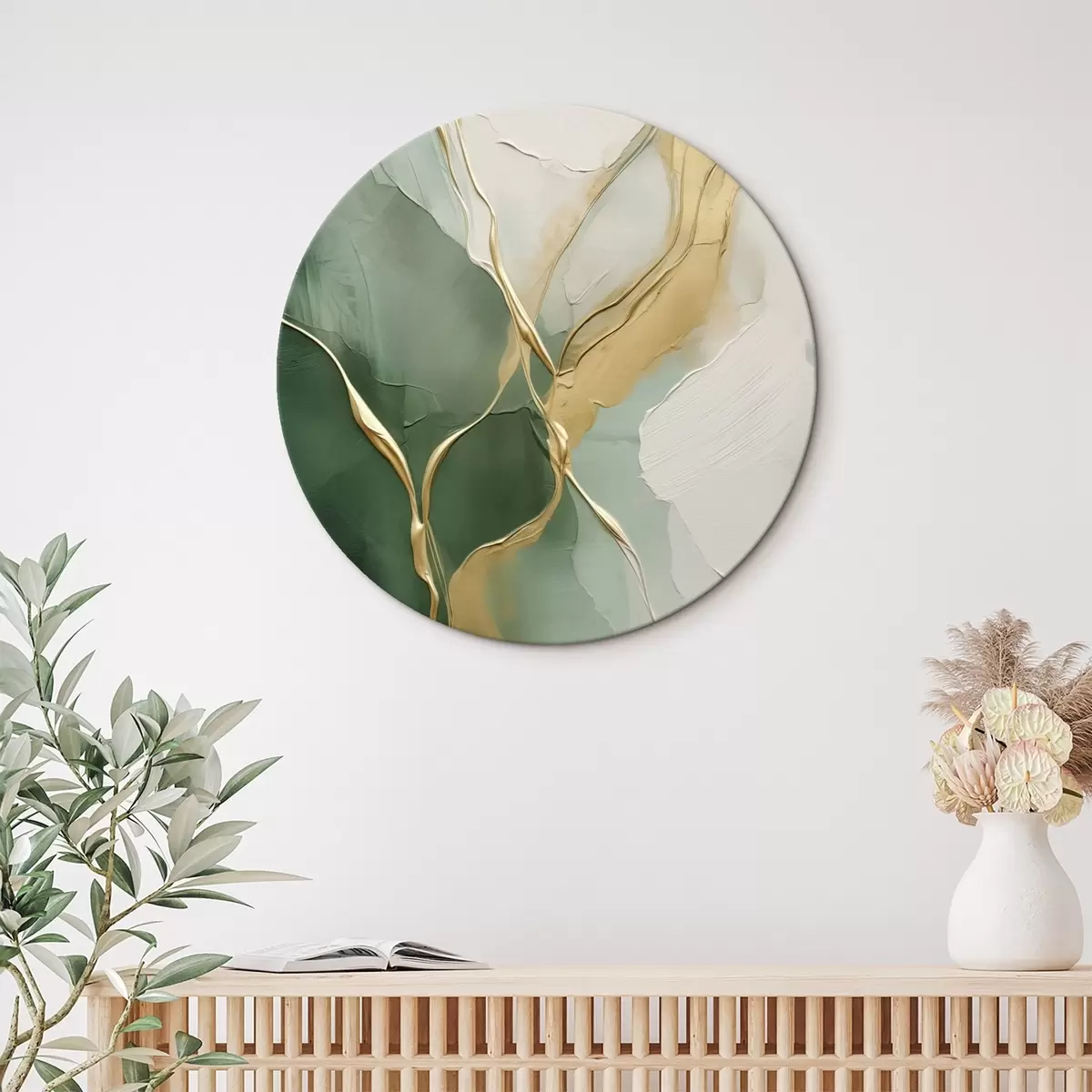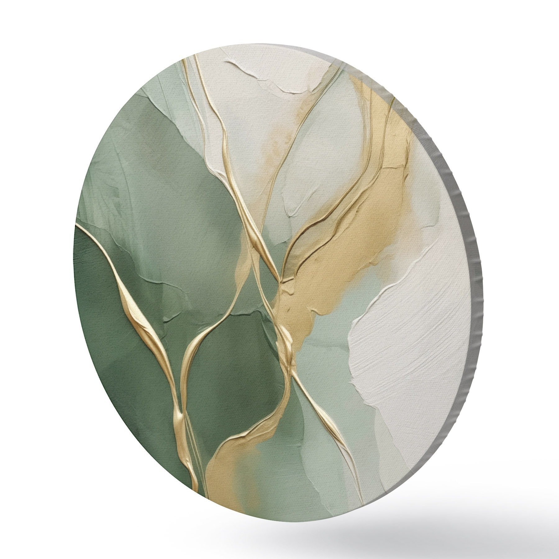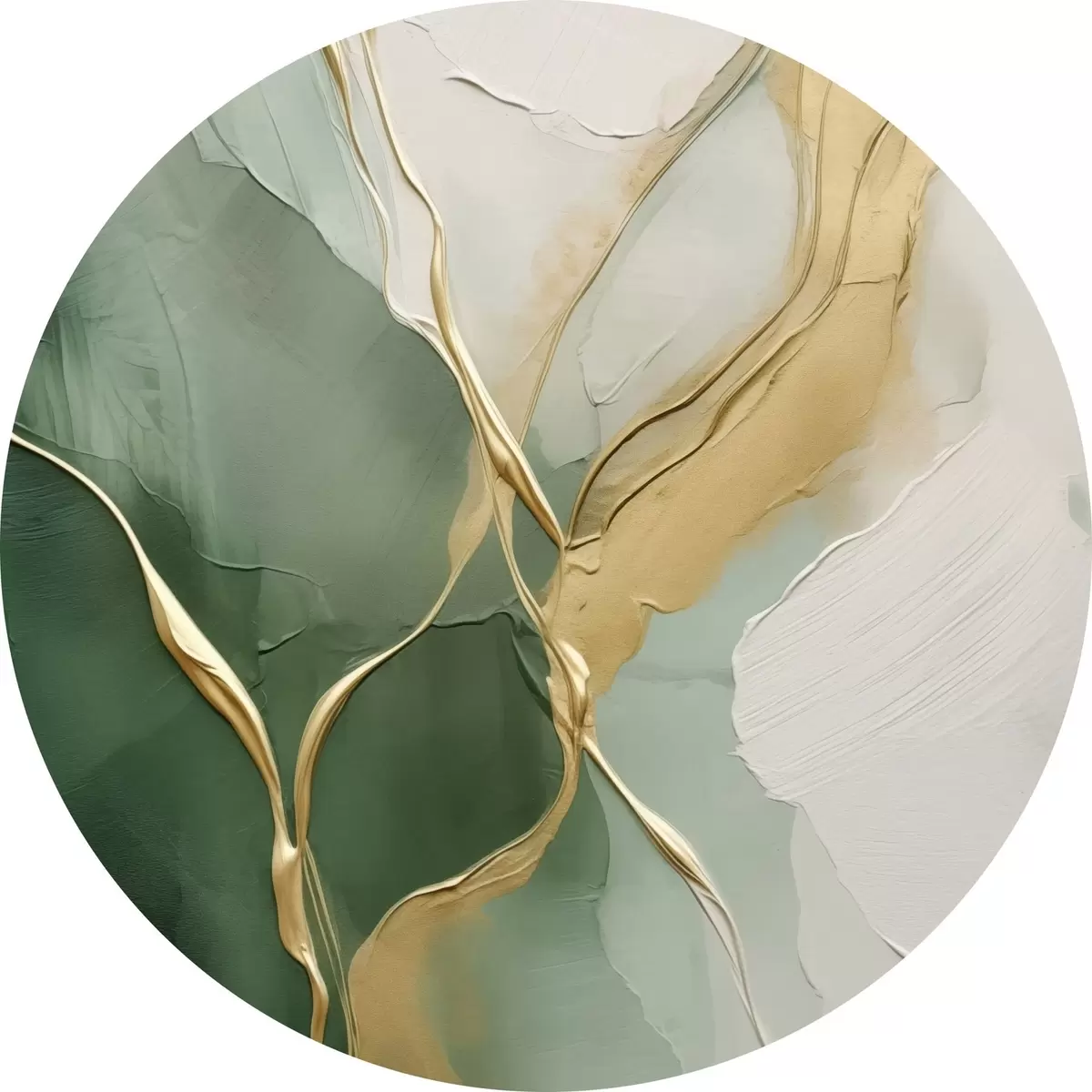 Cuadros redondos Abstracción en color crema esmeralda con vetas amarillas r45887