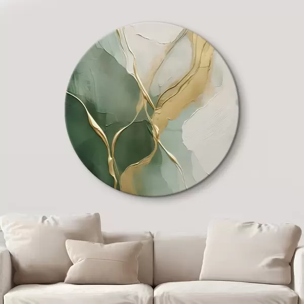 Cuadros redondos Abstracción en color crema esmeralda con vetas amarillas r45887