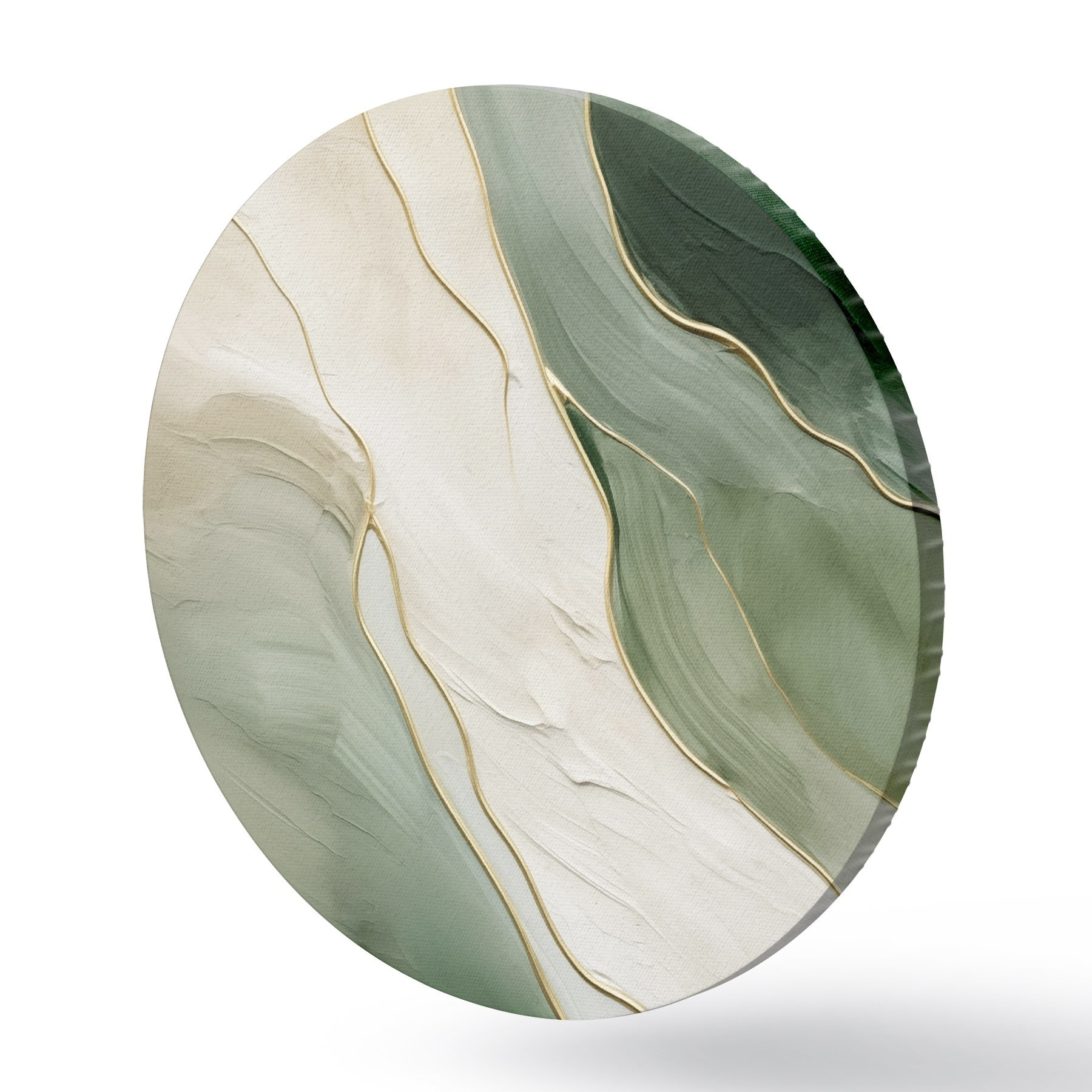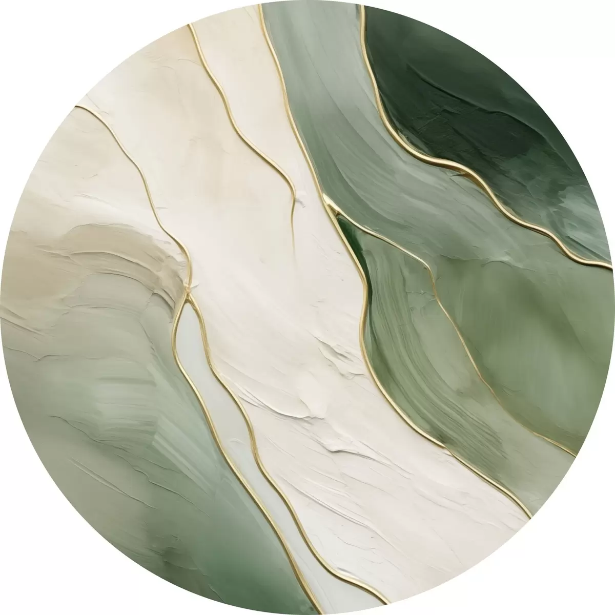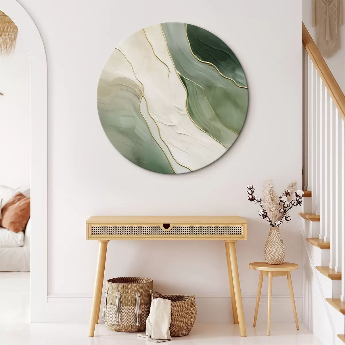 Cuadros redondos Abstracción esmeralda con finas líneas amarillas r45888
