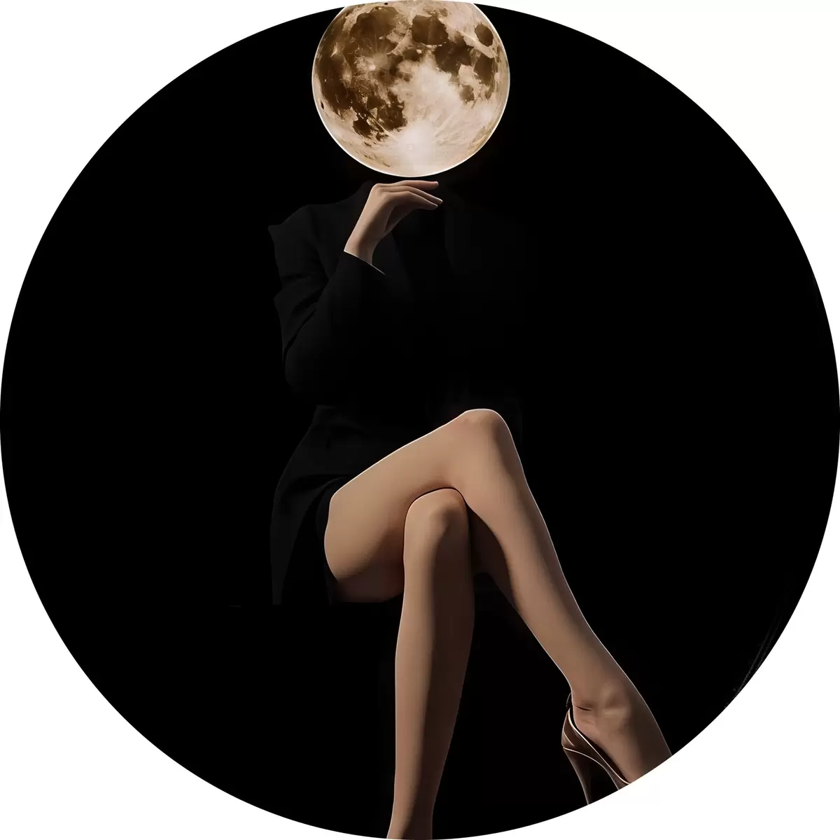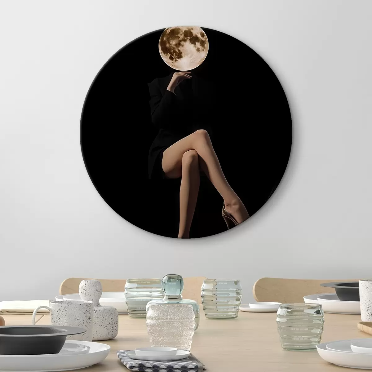 Cuadros redondos Silueta con la luna como rostro, minimalismo r45891