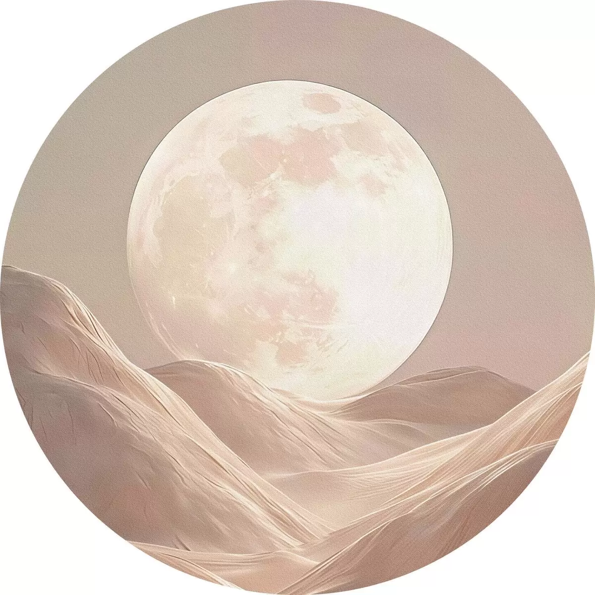 Cuadros redondos Luna sobre dunas arenosas en tonos rosados r45892