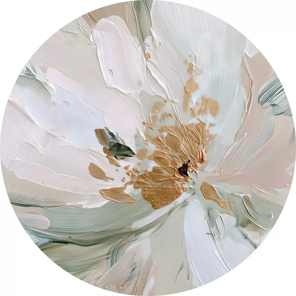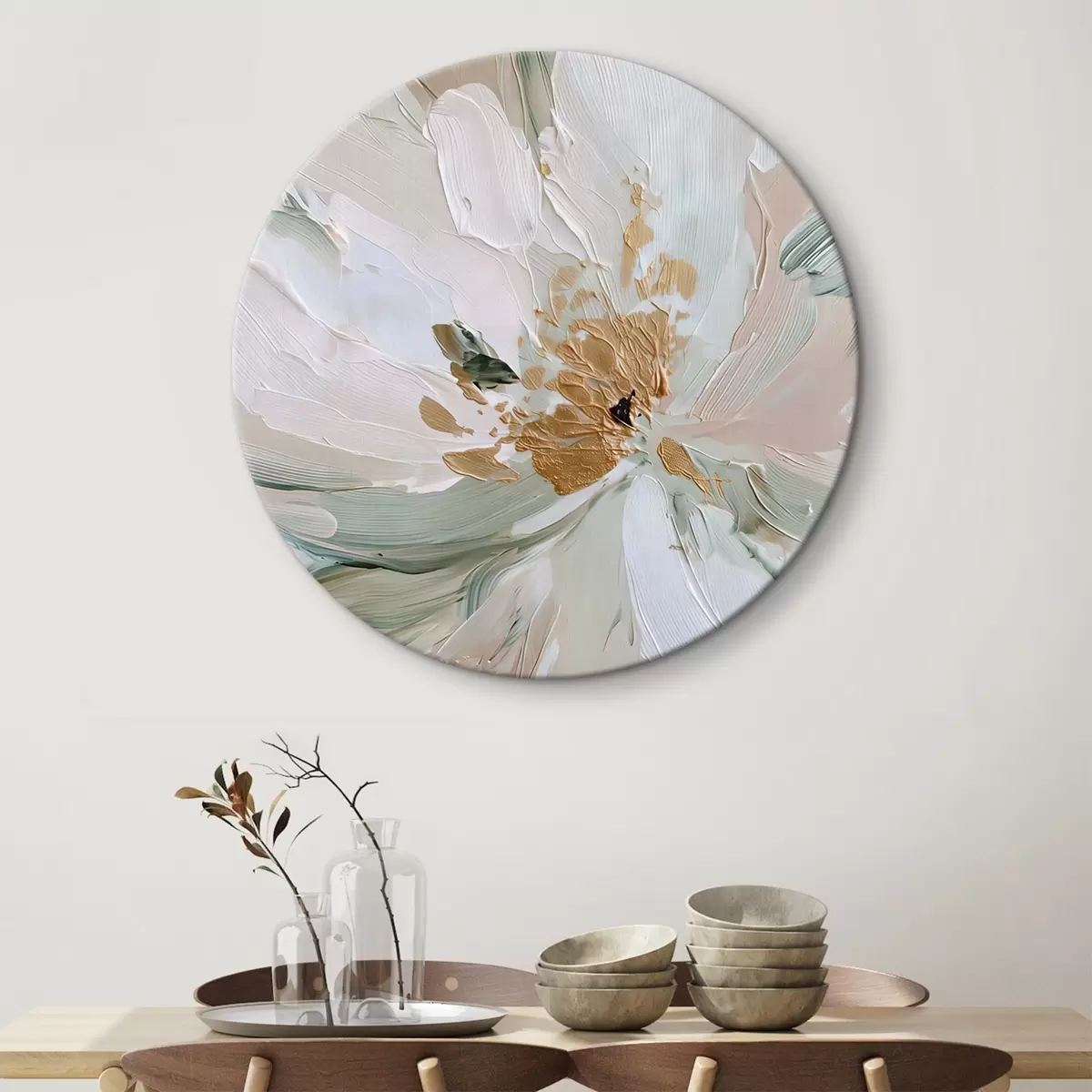 Cuadros redondos Flor en impasto pastel con detalles en amarillo r45900