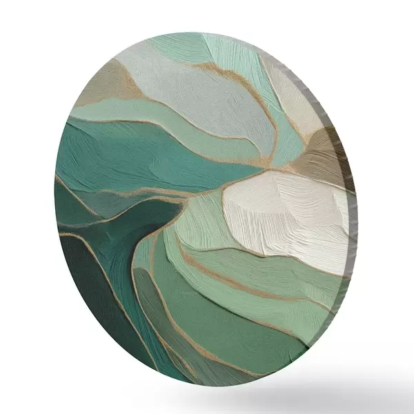 Cuadros redondos Abstracción verde salvia con contorno amarillo r45901