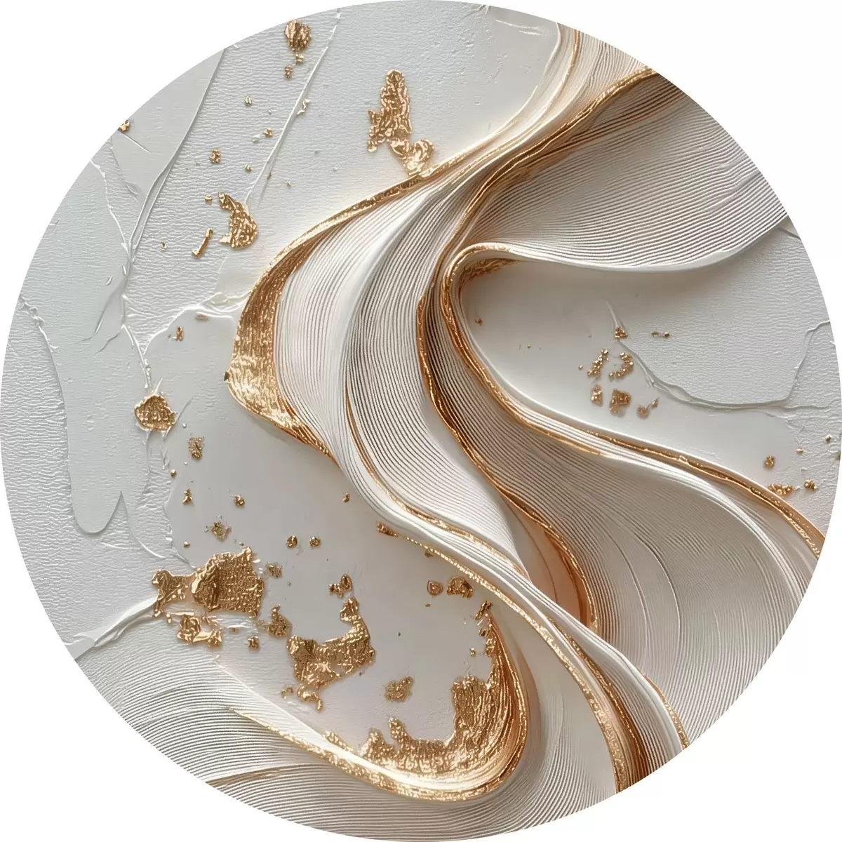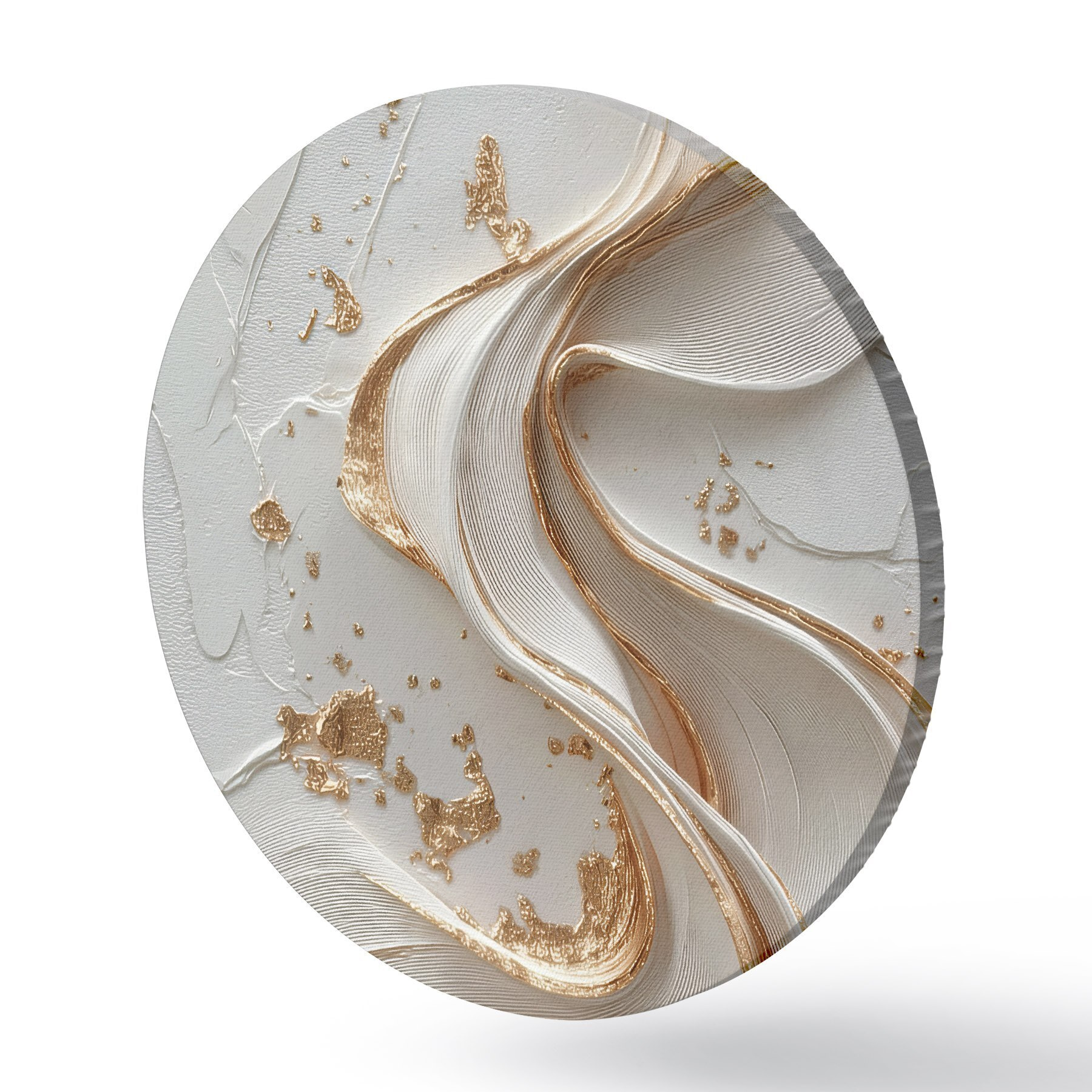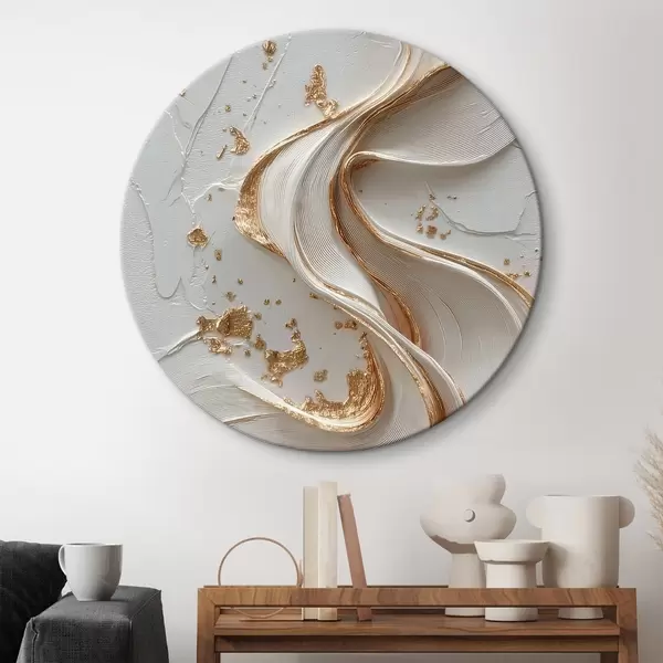 Cuadros redondos Trazos texturizados blancos y amarillos con detalles metálicos r45906