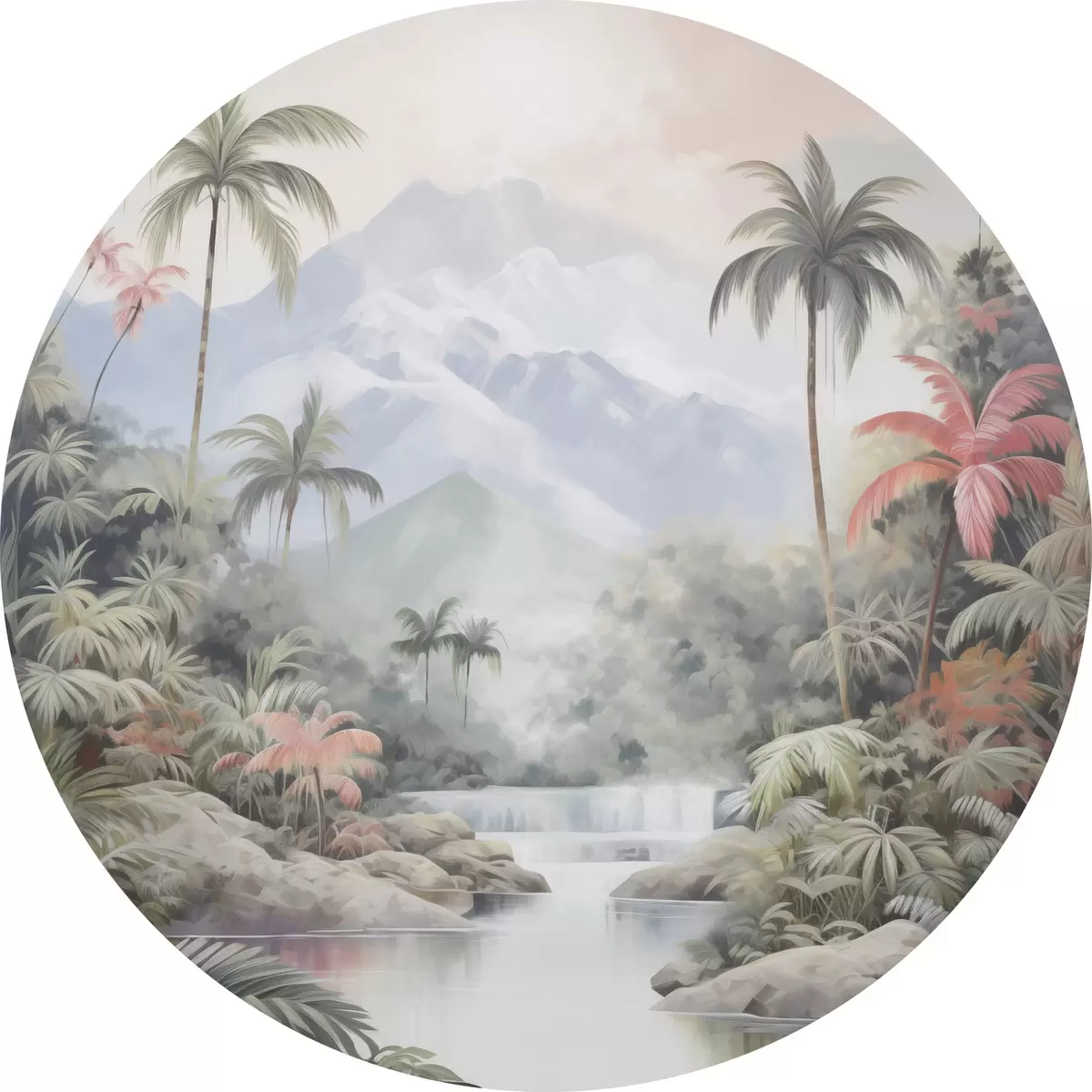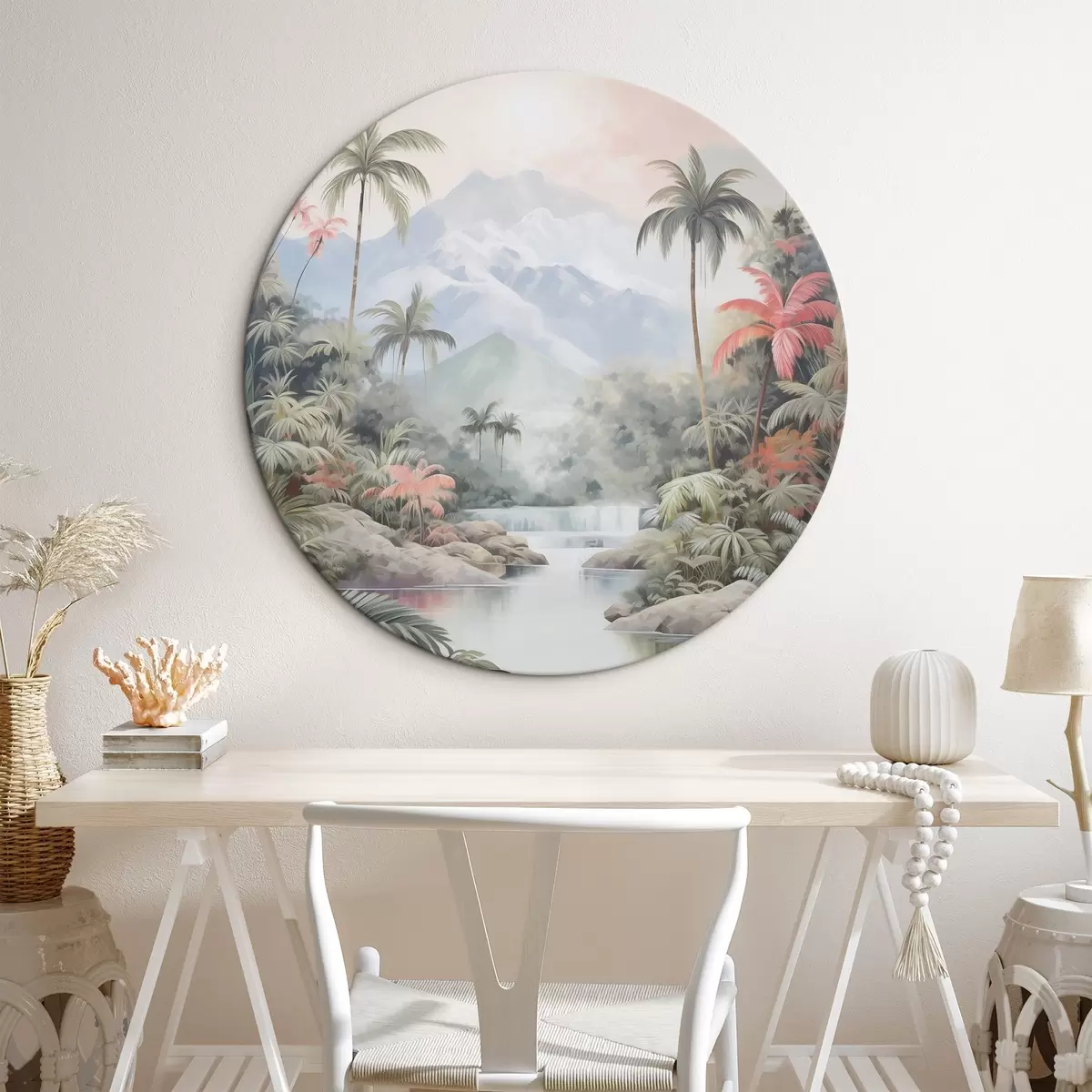Cuadros redondos Río en bosque tropical frente a las montañas r45913