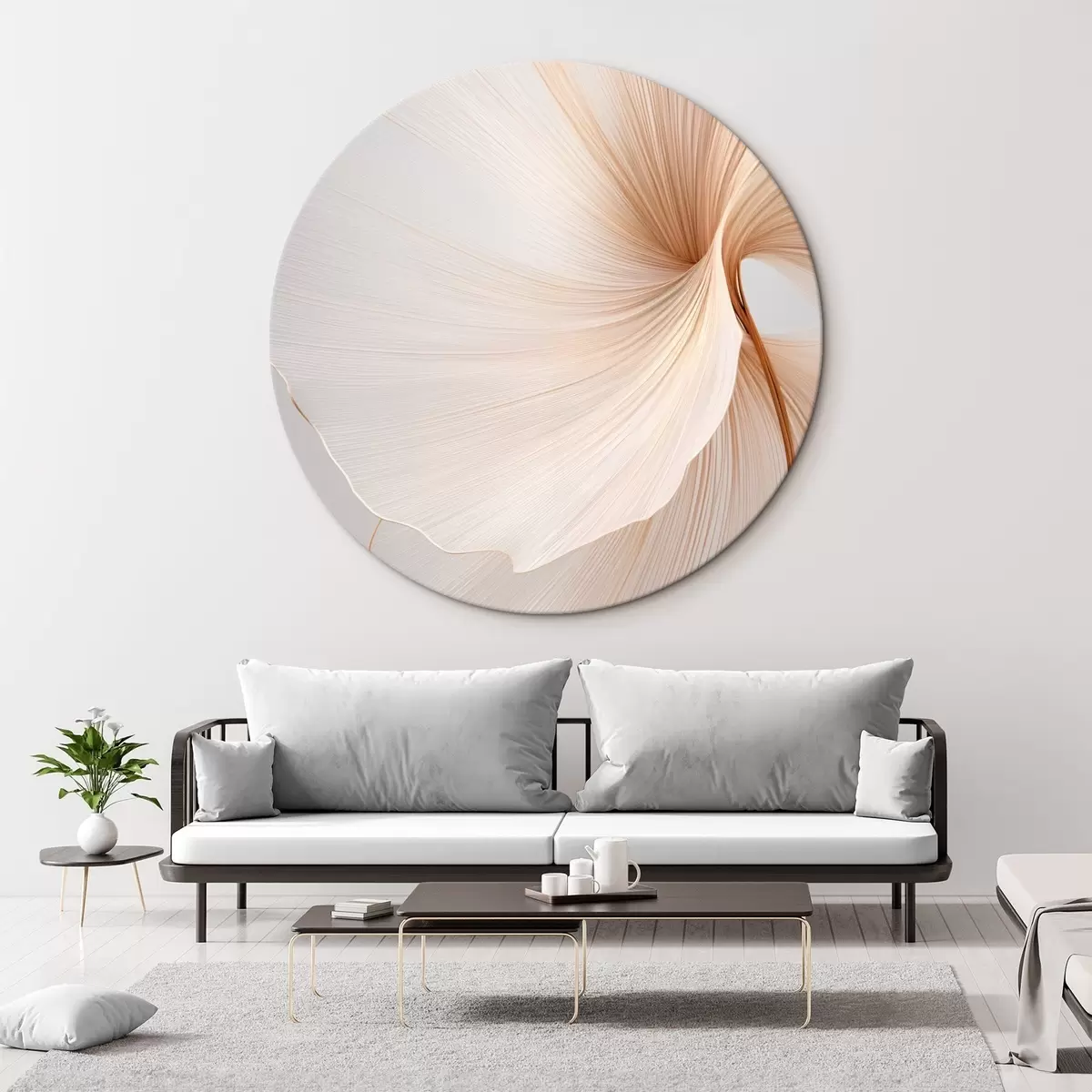 Cuadros redondos Flores abstractas con pétalos finos y delicados en tonos blancos y beige r45922