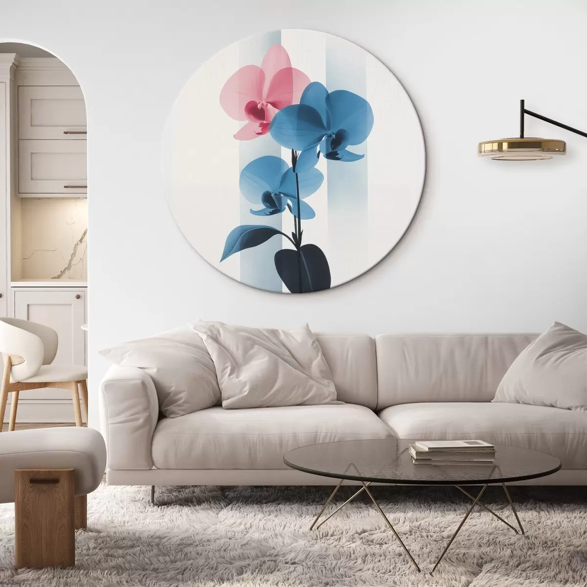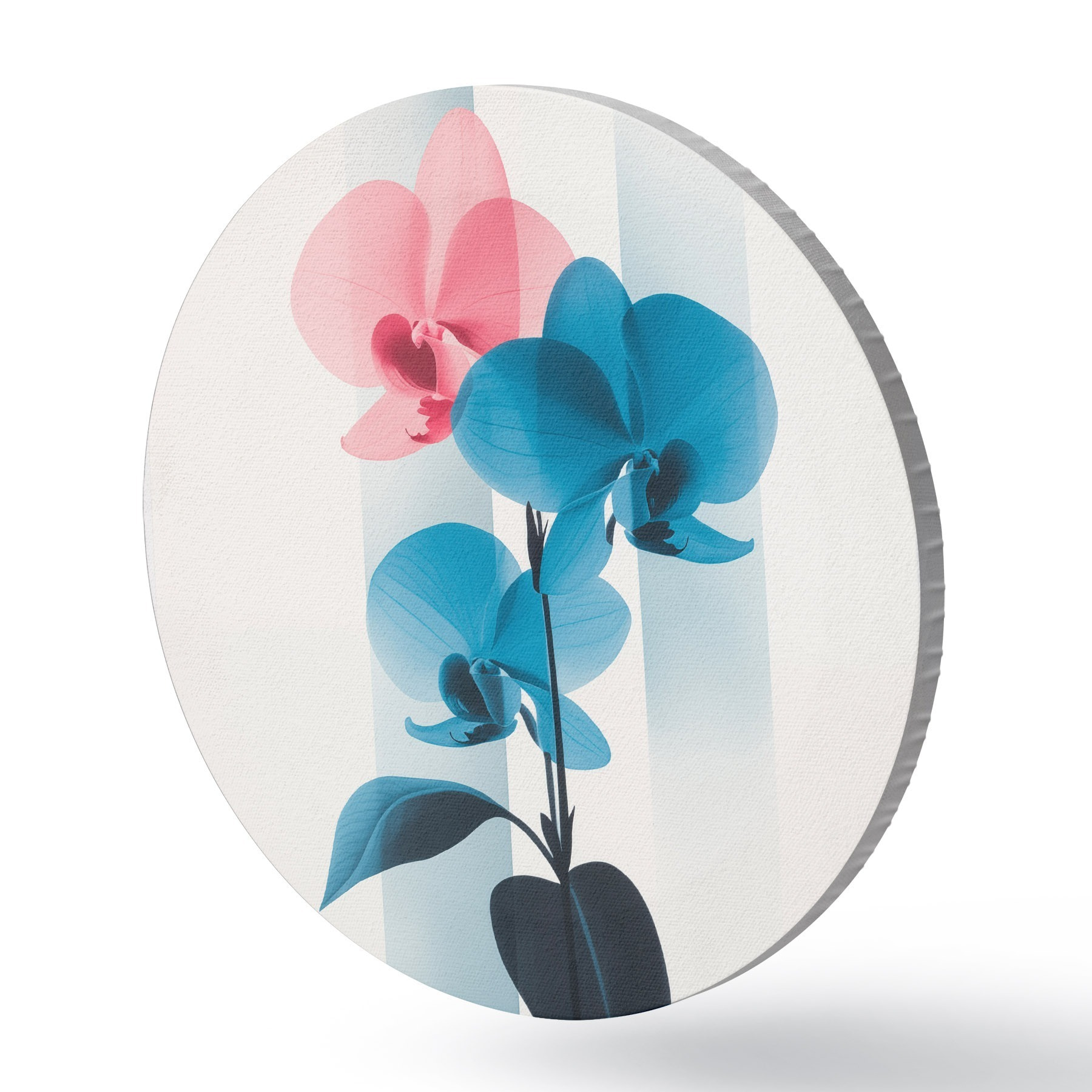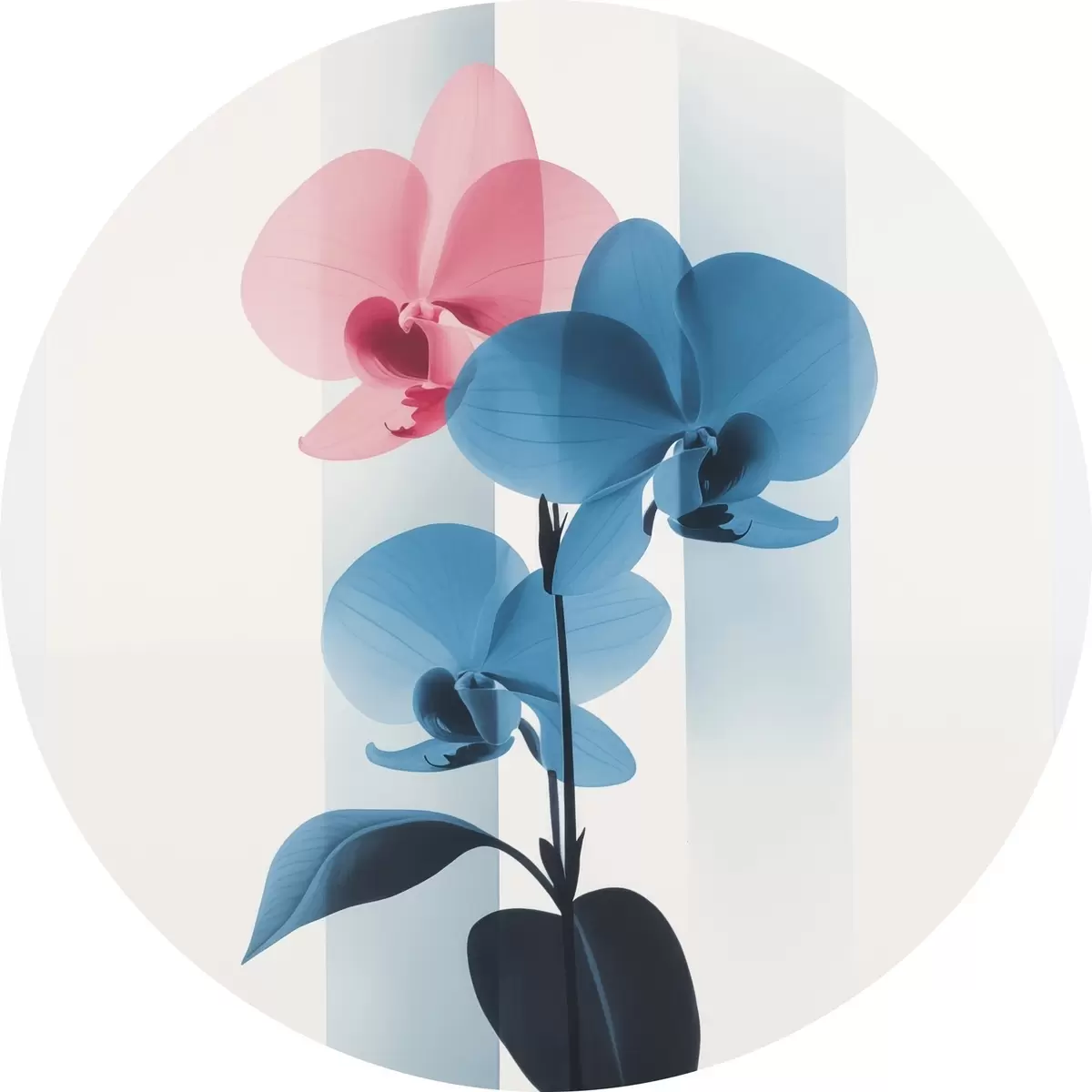 Cuadros redondos Orquídeas con hojas sobre fondo blanco con rayas verticales r45925