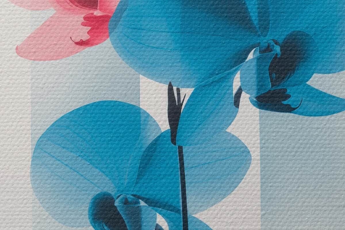 Foto Orquídeas con hojas sobre fondo blanco con rayas verticales Nr r45925