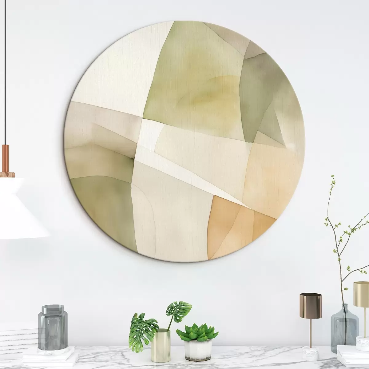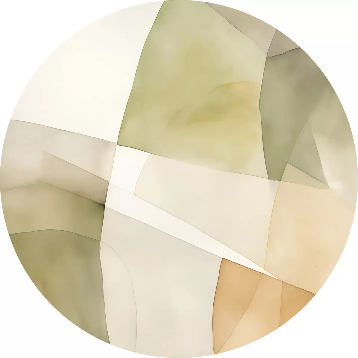Cuadros redondos Formas geométricas abstractas con textura de acuarela en tonos verdes, marrones y beiges r45928