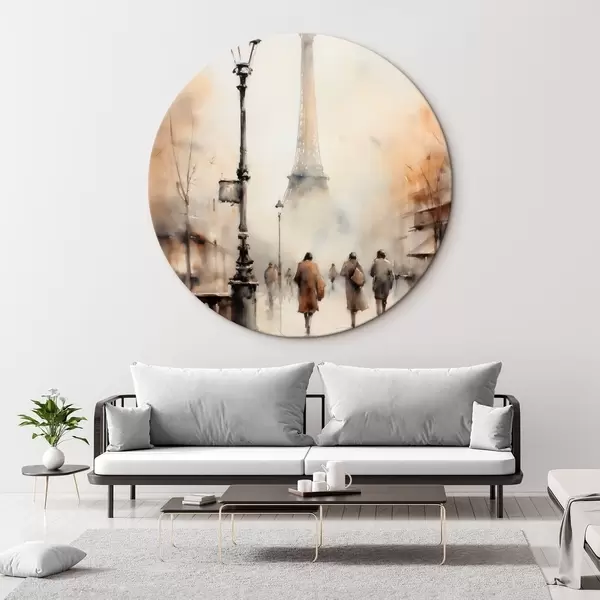 Cuadros redondos Un lluvioso día de otoño en París con la Torre Eiffel al fondo y farolas vintage r45931