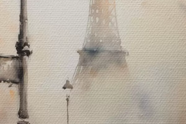 Foto Un lluvioso día de otoño en París con la Torre Eiffel al fondo y farolas vintage Nr r45931