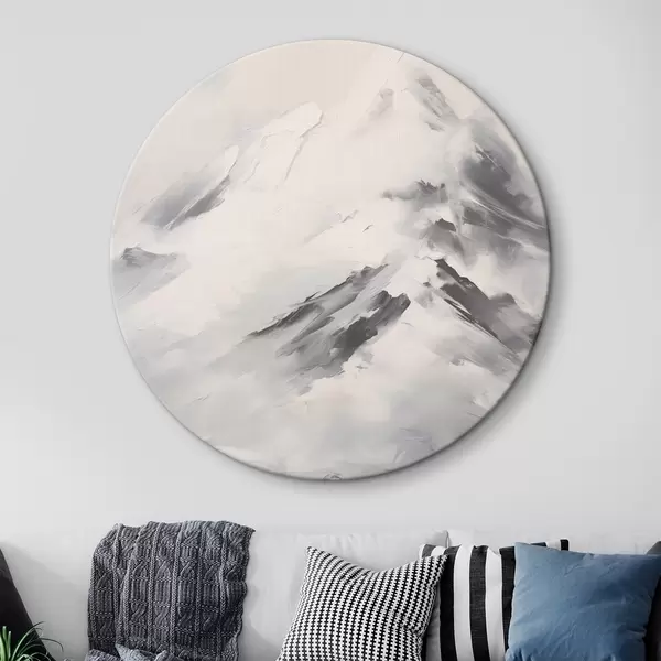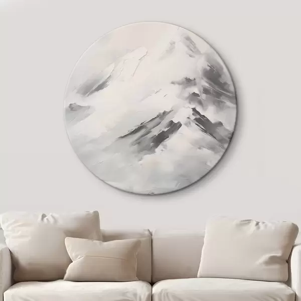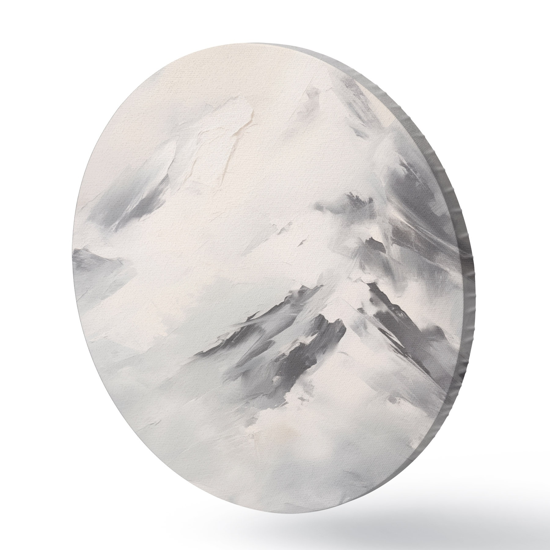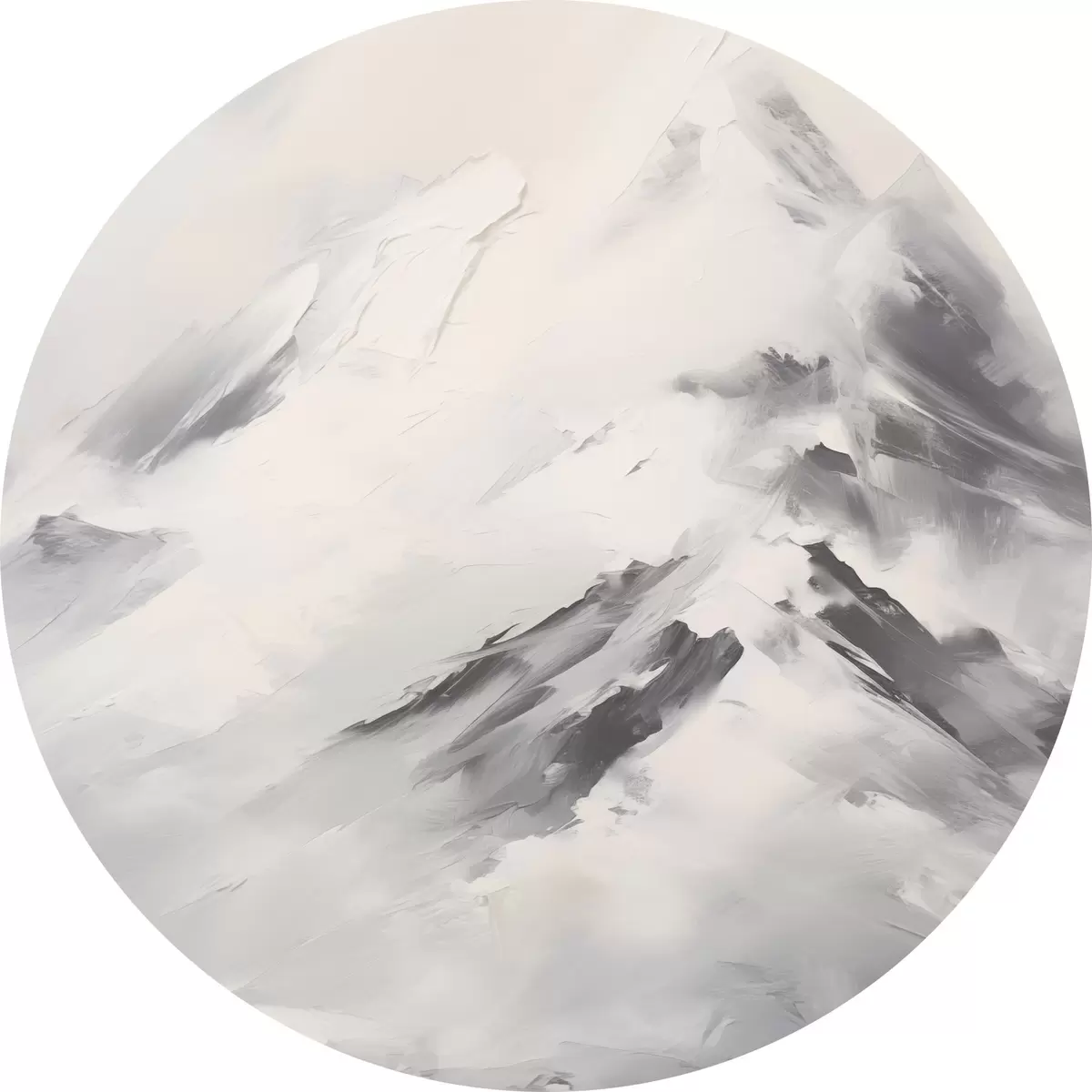 Cuadros redondos Cumbres nevadas con sombras grises, cielo gris, pinceladas, texturizado, minimalista r45932