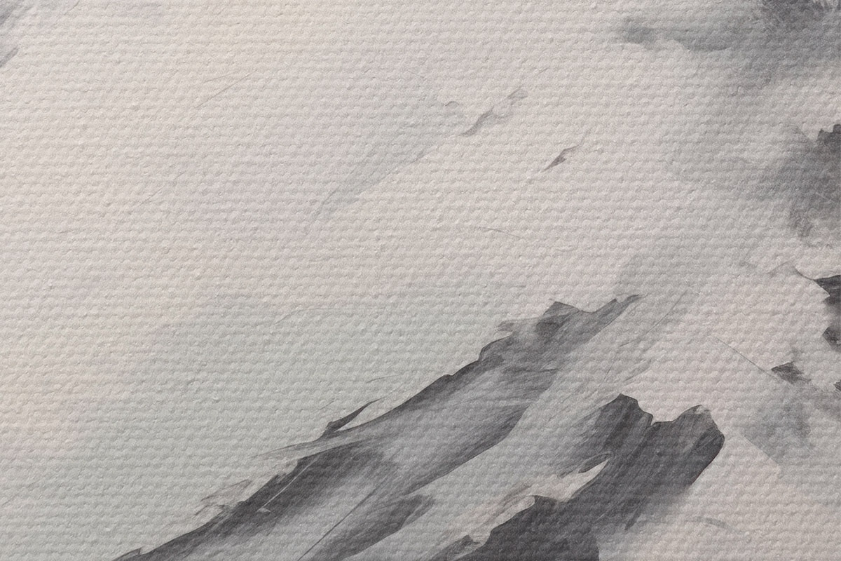 Foto Cumbres nevadas con sombras grises, cielo gris, pinceladas, texturizado, minimalista Nr r45932