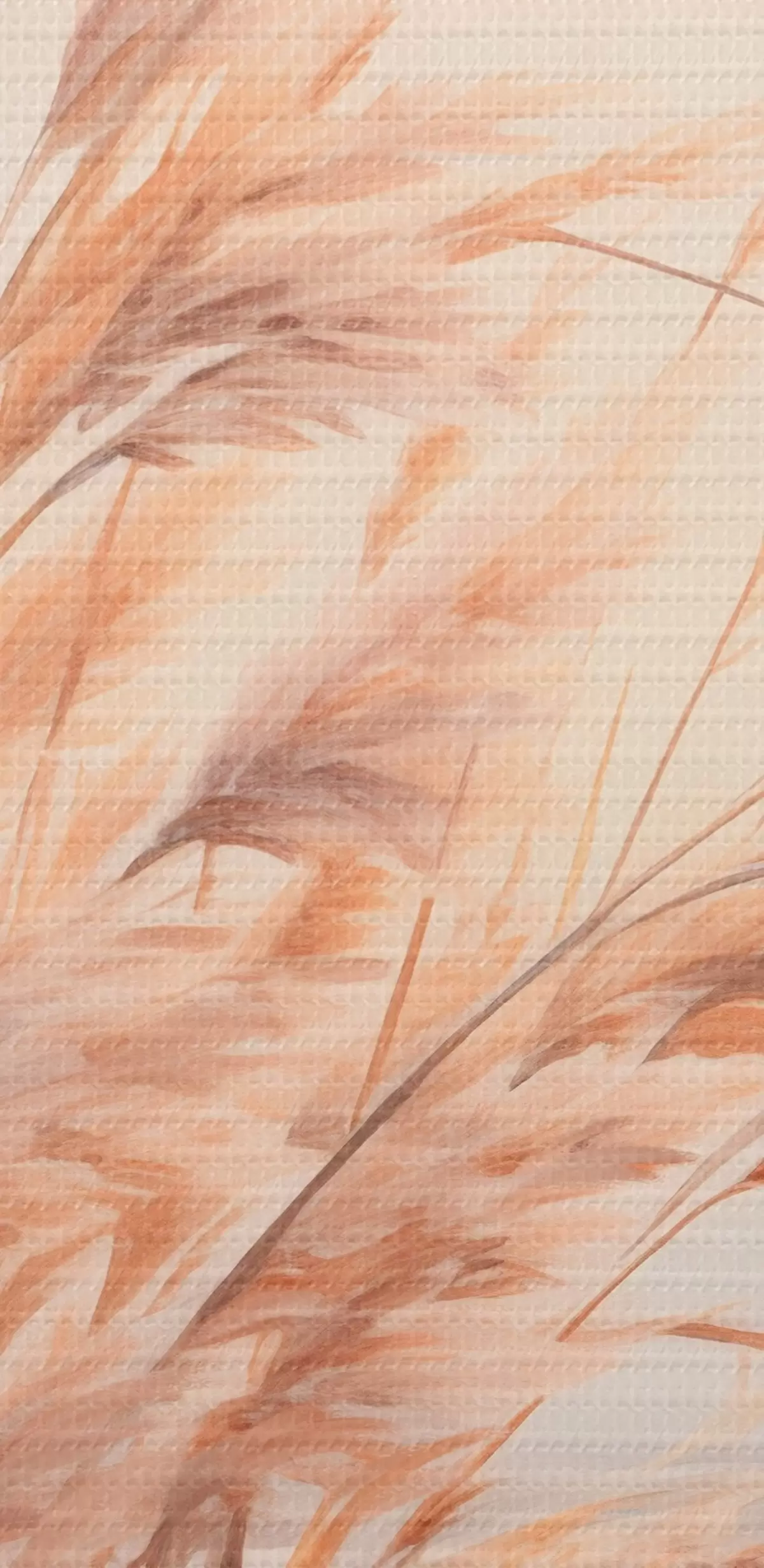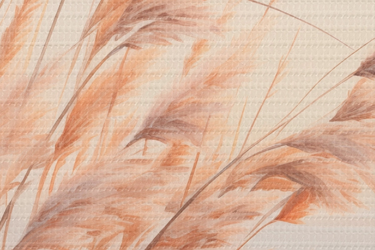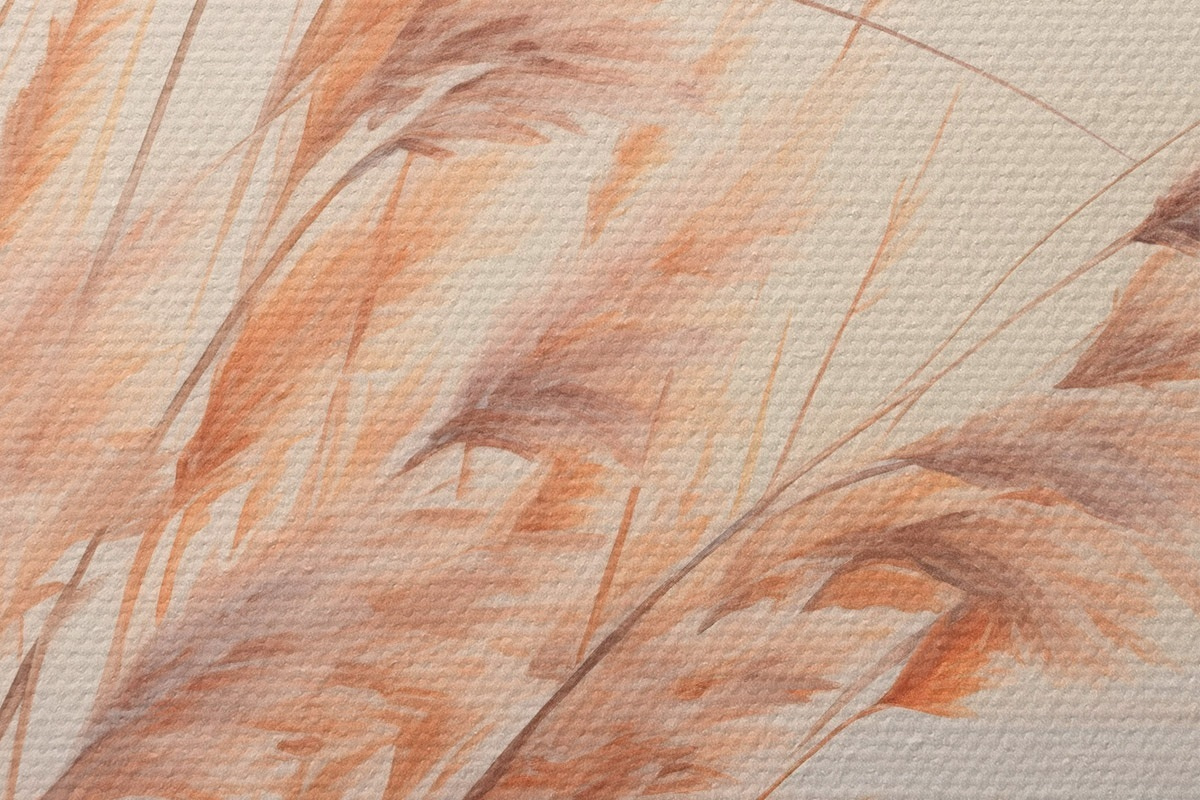 Cuadros redondos Hierba de la pampa con una paleta de colores naranja pastel, cielo rosa claro, un paisaje tranquilo r45934