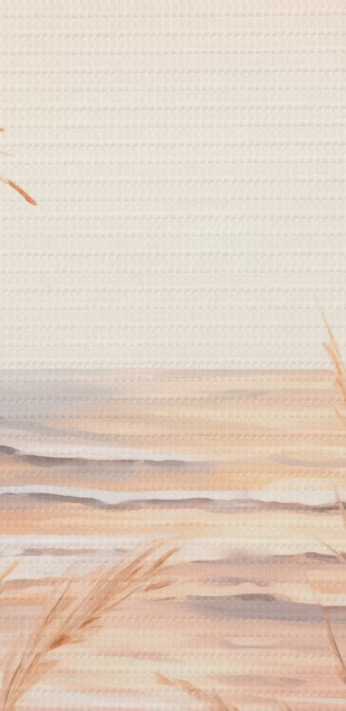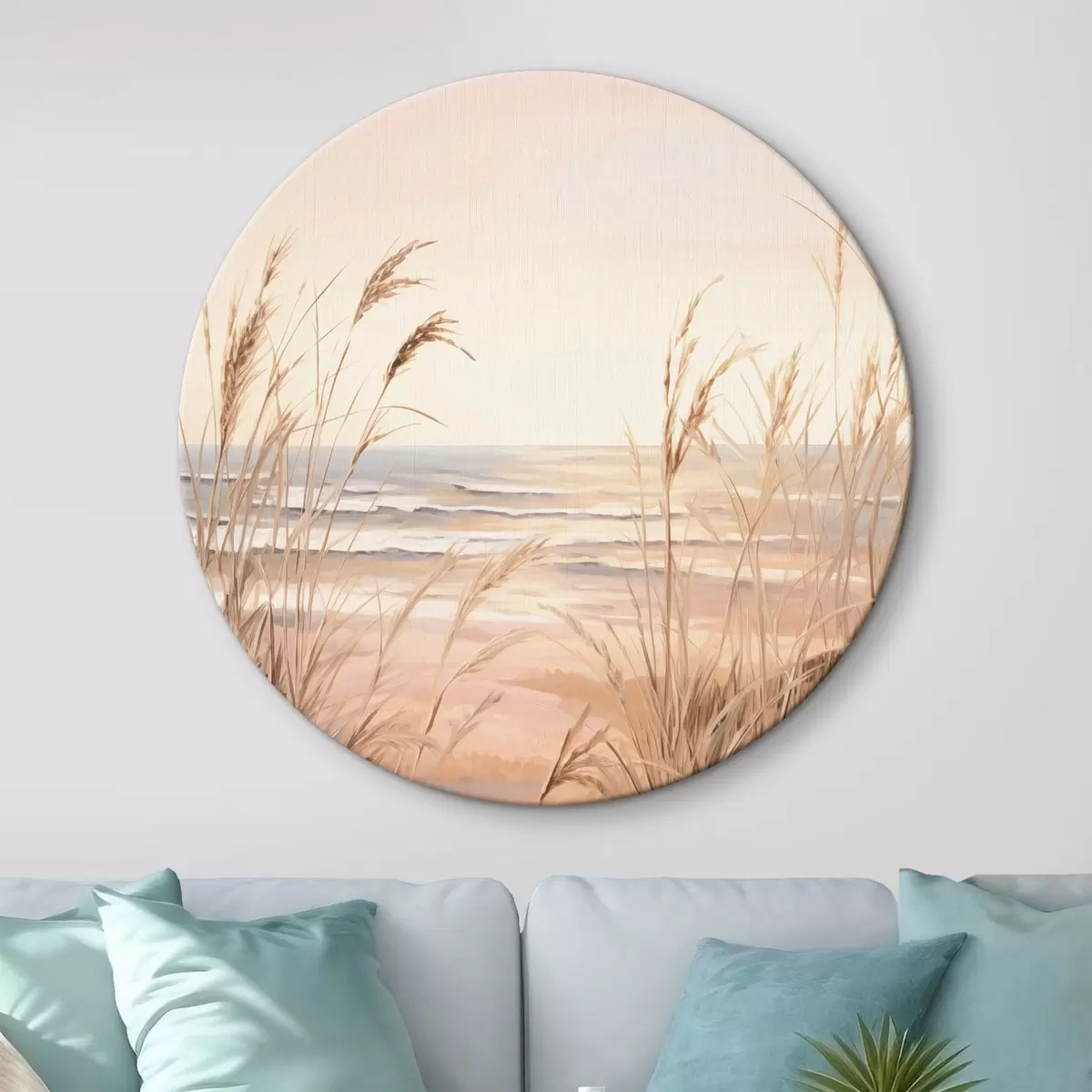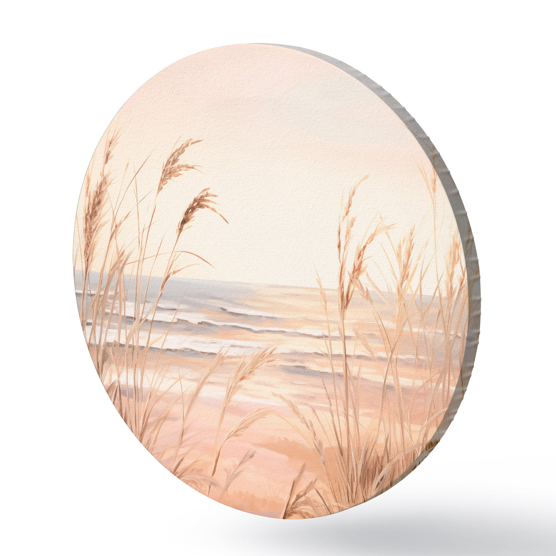 Cuadros redondos Hierba de la pampa con una paleta de colores naranja pastel, cielo rosa claro, un paisaje tranquilo r45935