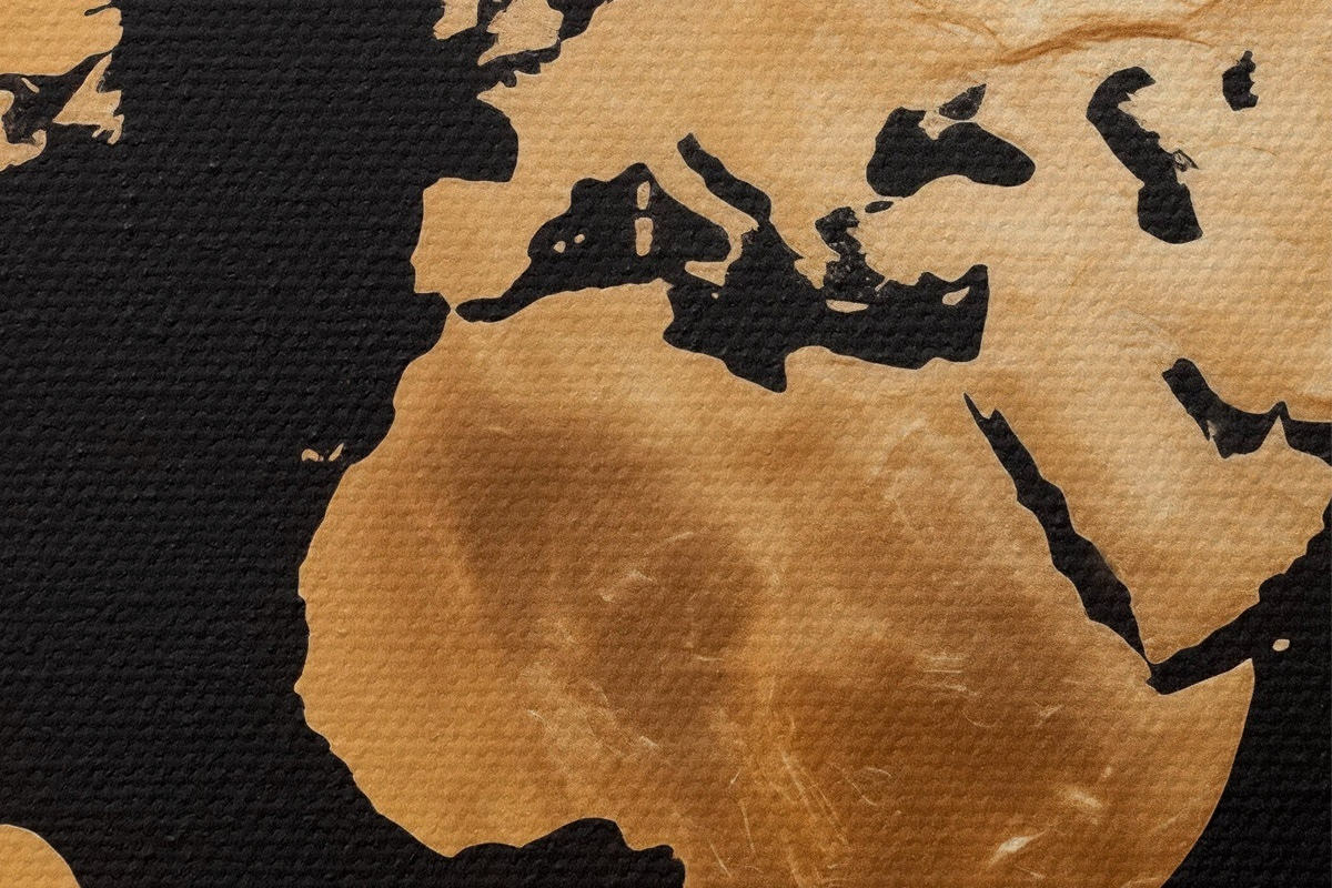 Foto Globo terráqueo abstracto con textura amarilla, planeta sobre fondo negro, arte minimalista moderno Nr r45942