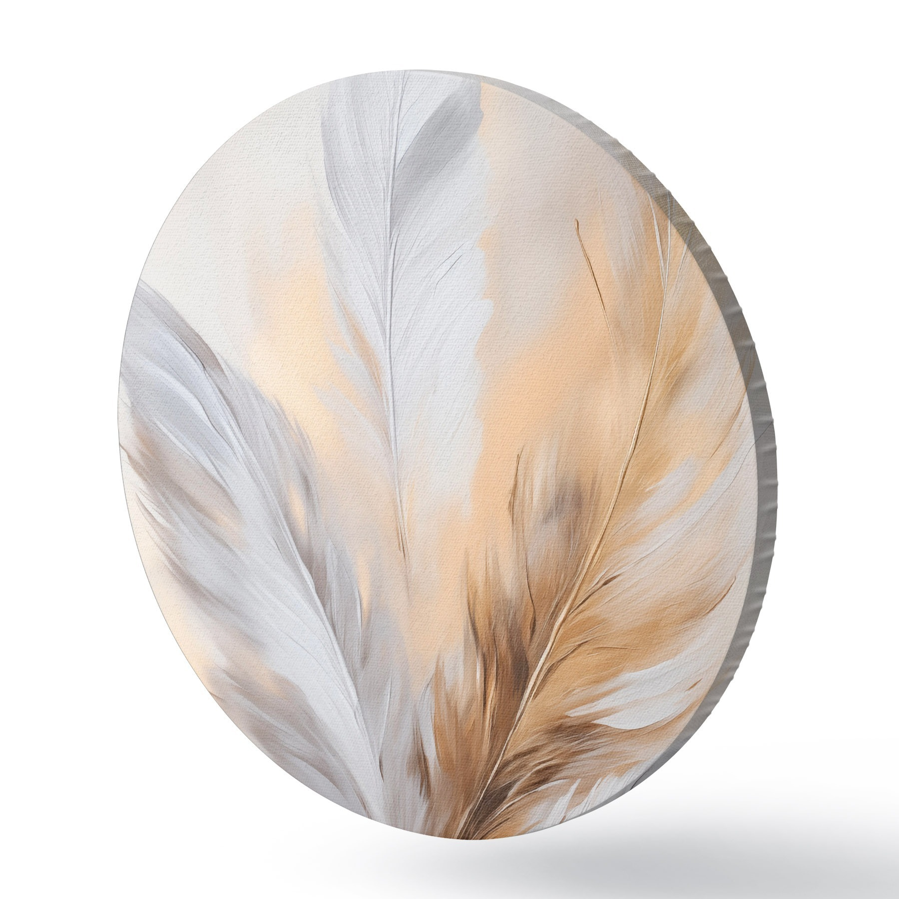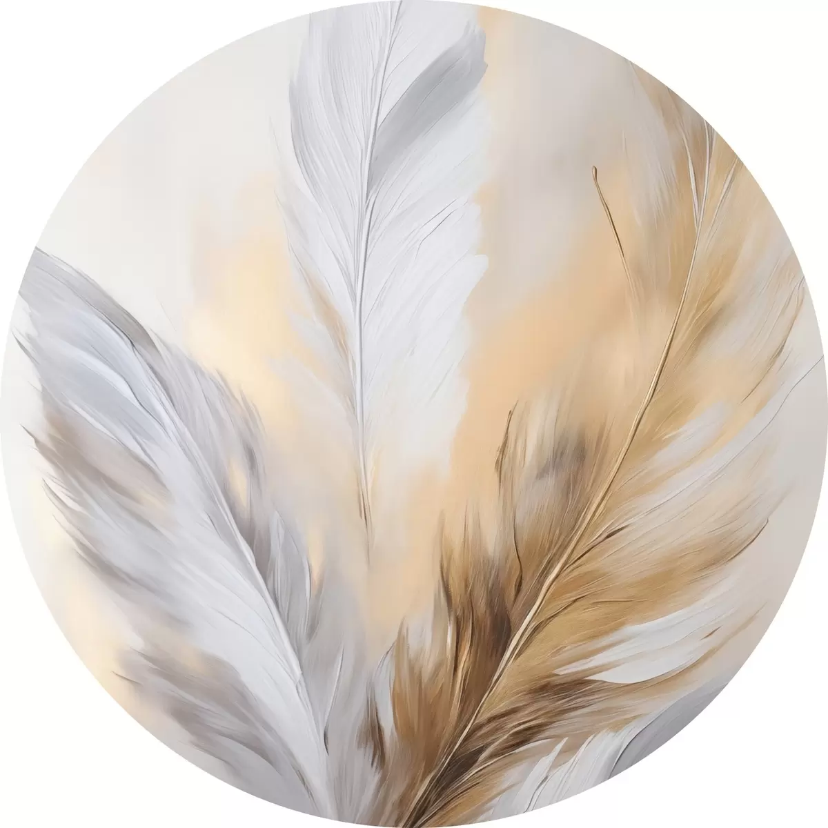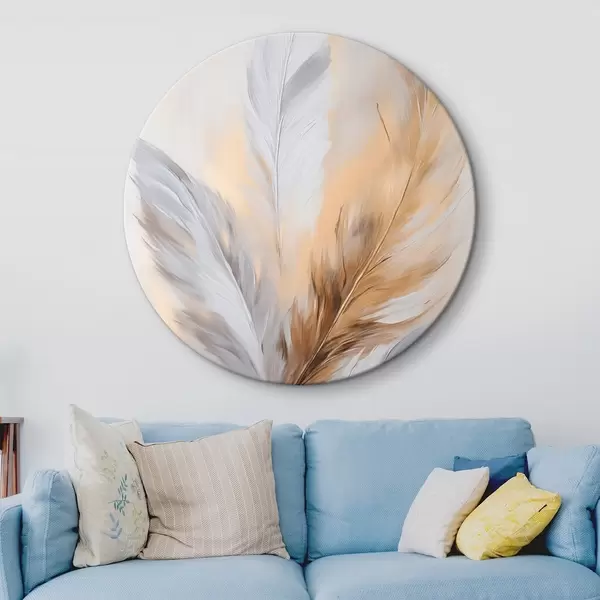 Cuadros redondos Plumas con detalles en naranja, composición minimalista con textura, arte moderno r45945