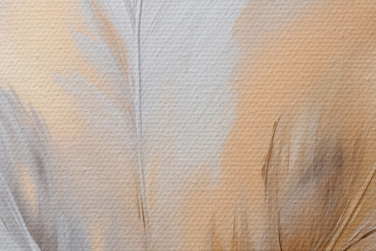 Foto Plumas con detalles en naranja, composición minimalista con textura, arte moderno Nr r45945