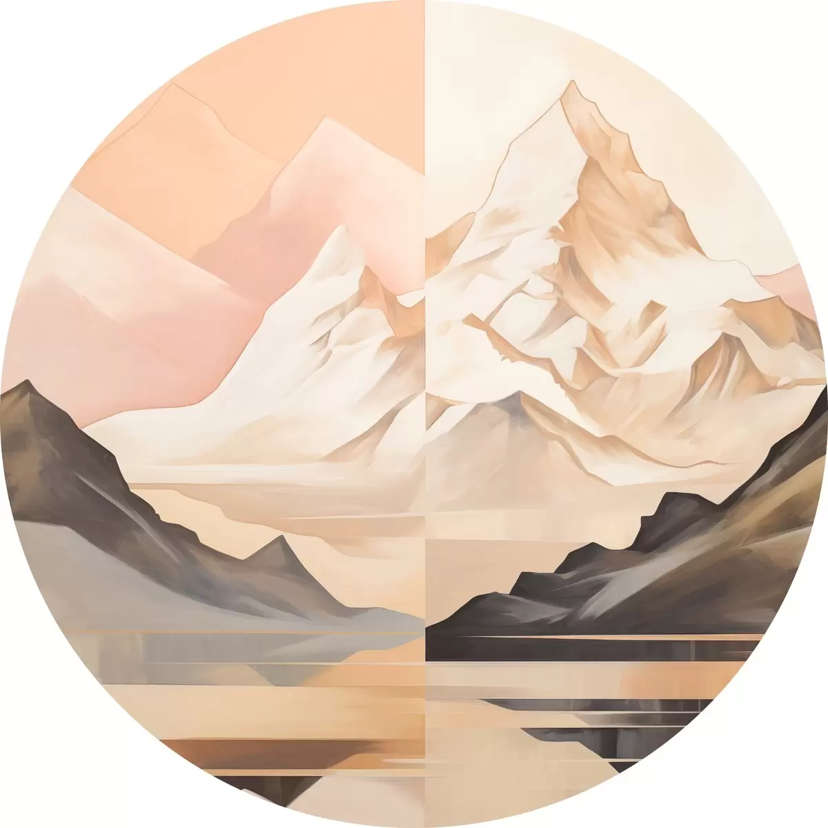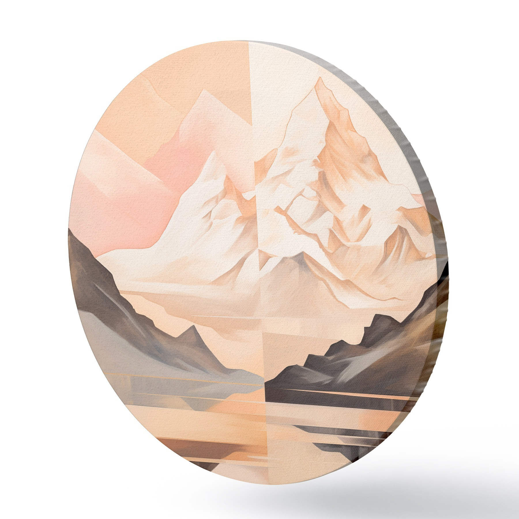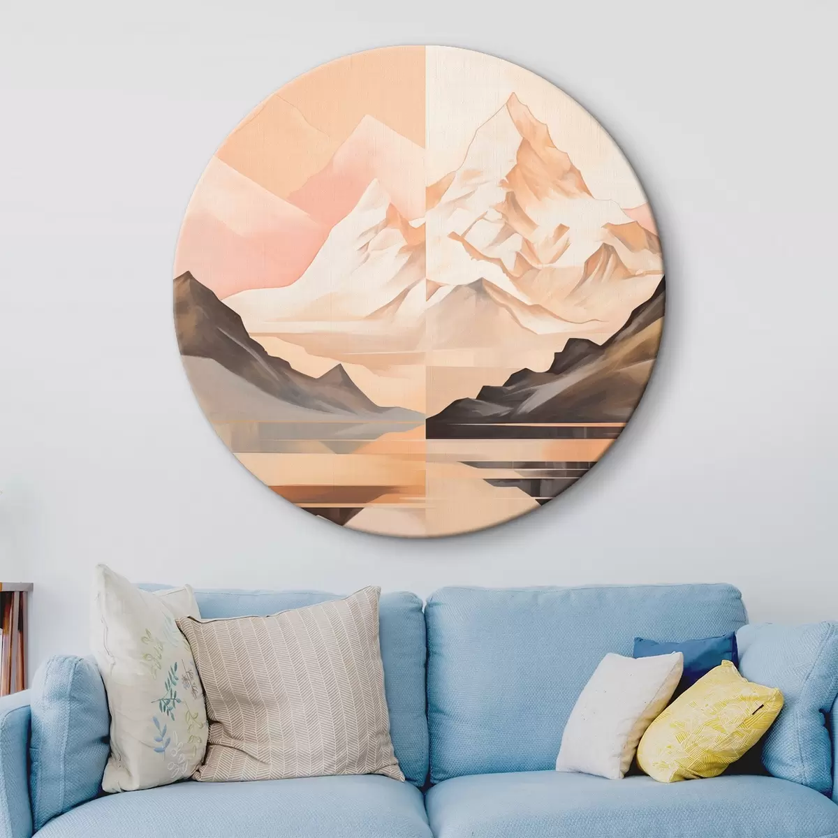 Cuadros redondos Paisaje abstracto con montañas y un lago, colores pastel, estilo minimalista r45948
