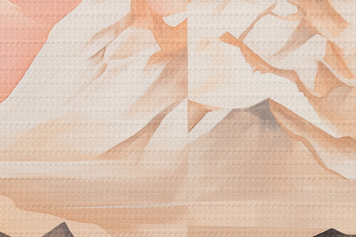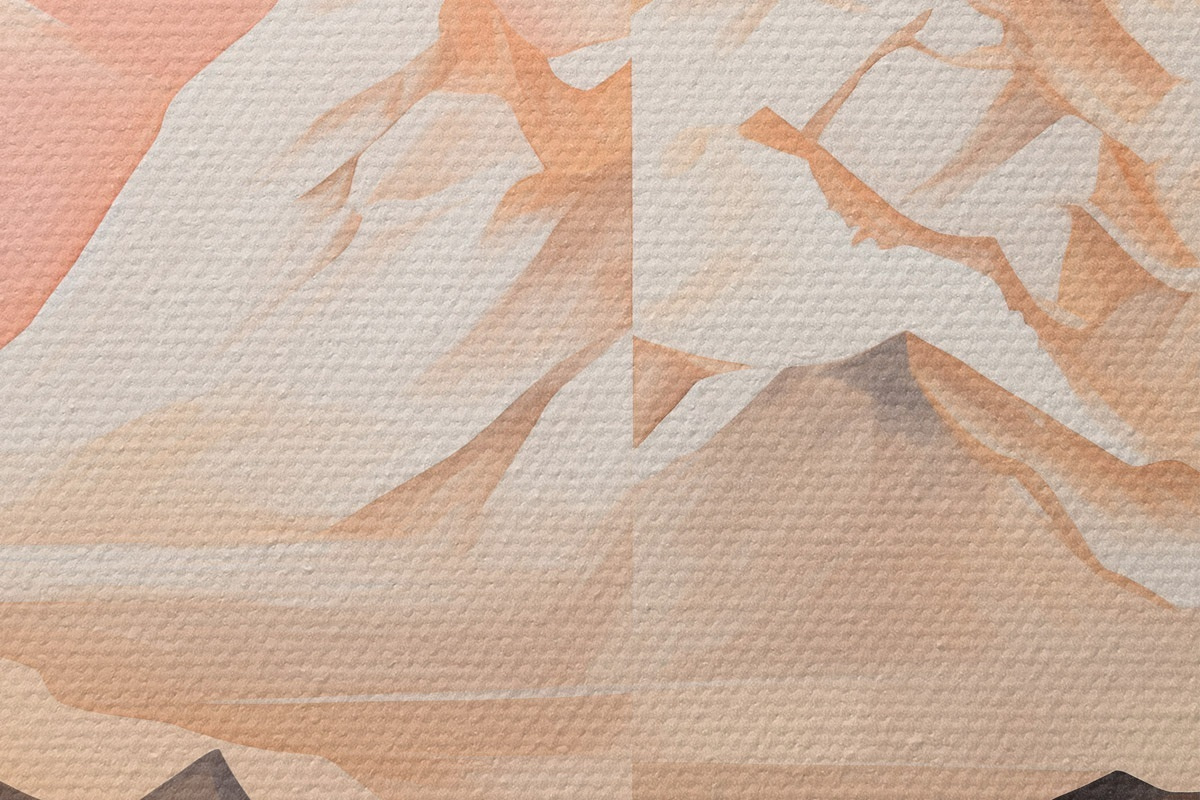 Foto Paisaje abstracto con montañas y un lago, colores pastel, estilo minimalista Nr r45948