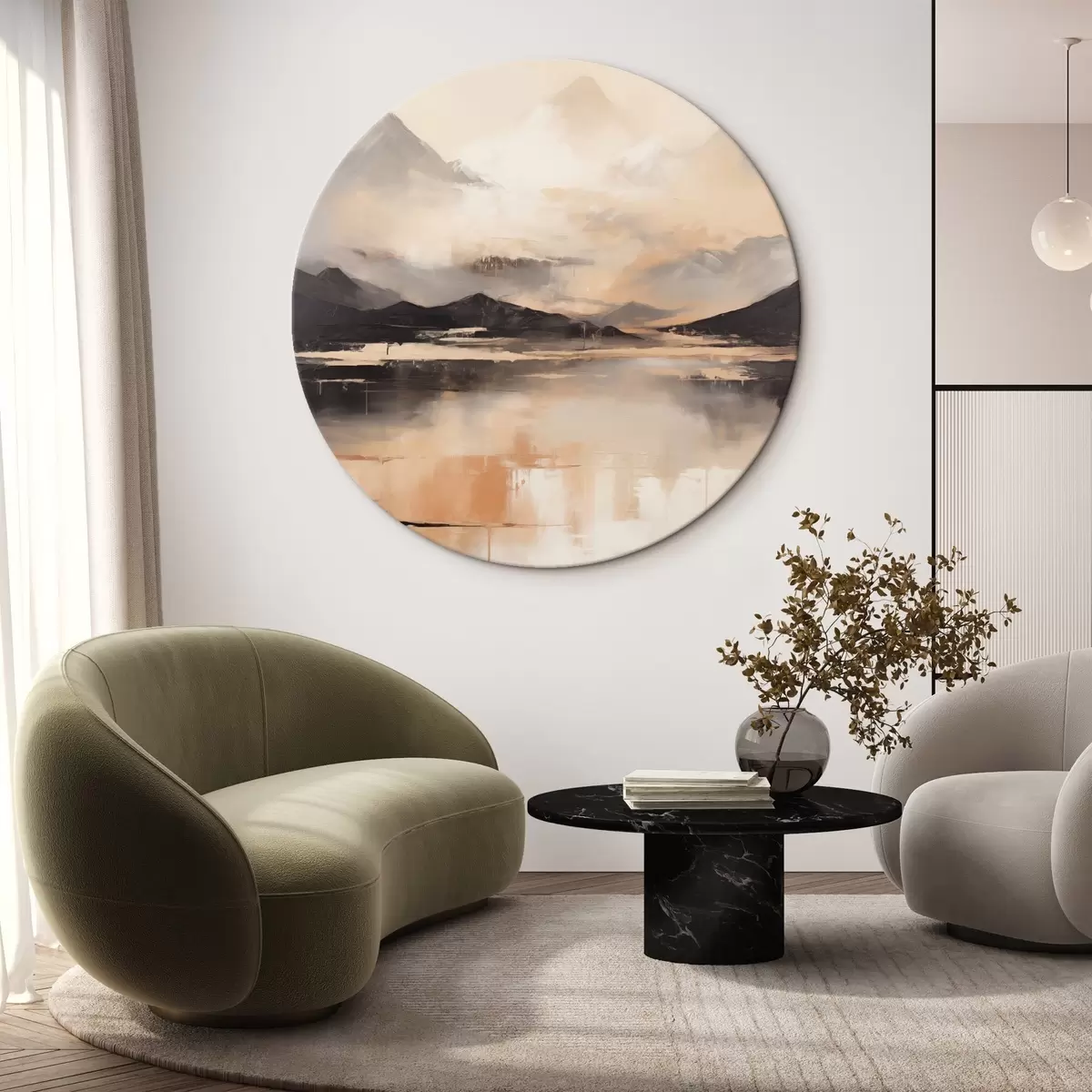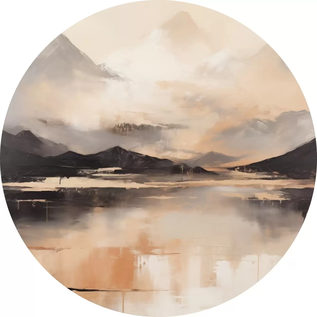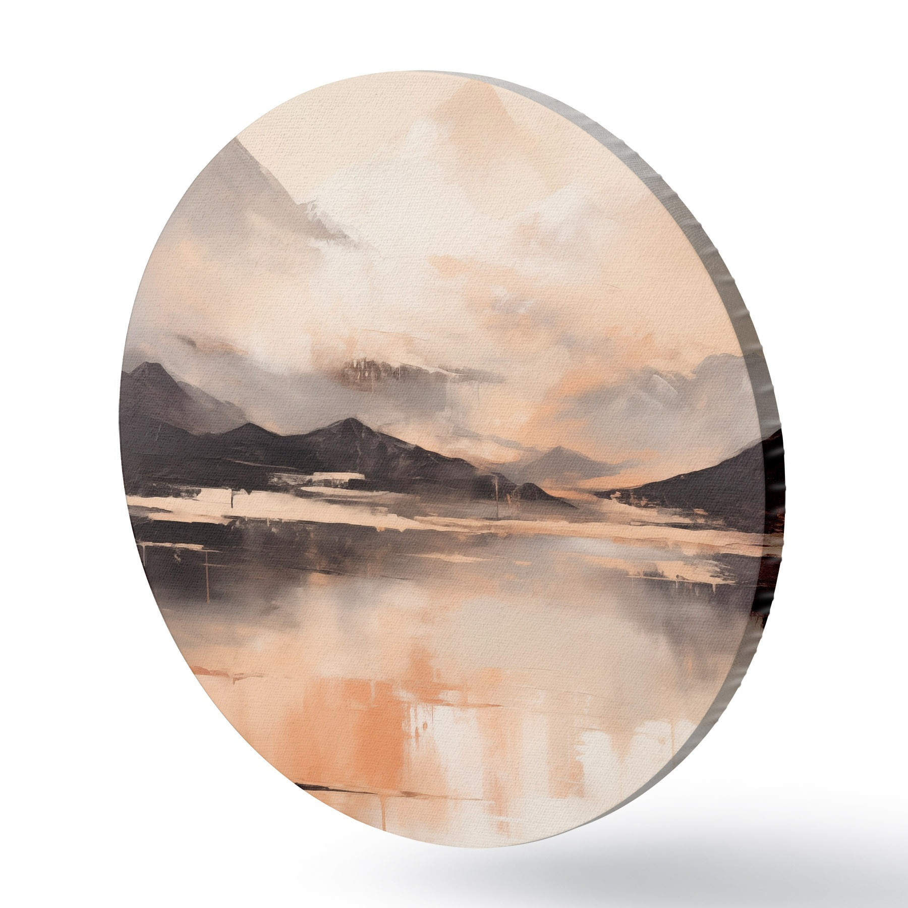 Cuadros redondos Una pintura con textura paisajística que imita montañas y un lago r45950