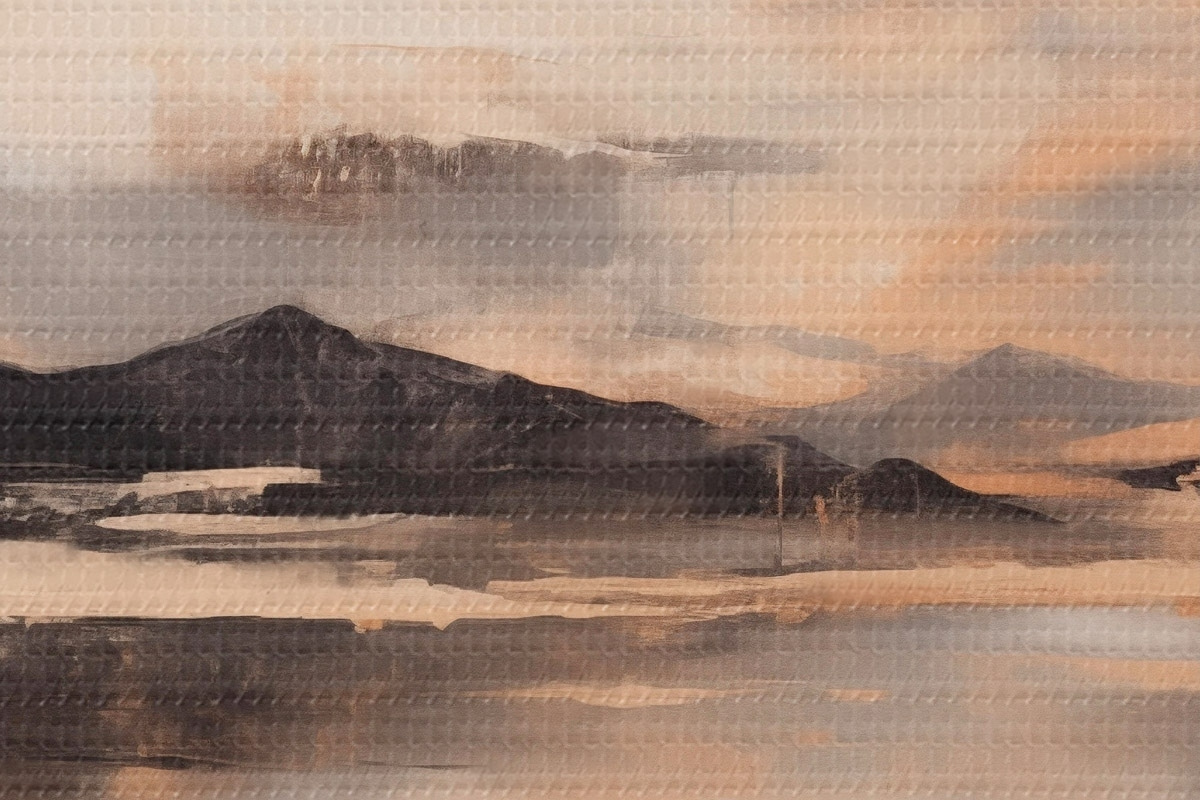 Foto Una pintura con textura paisajística que imita montañas y un lago Nr r45950
