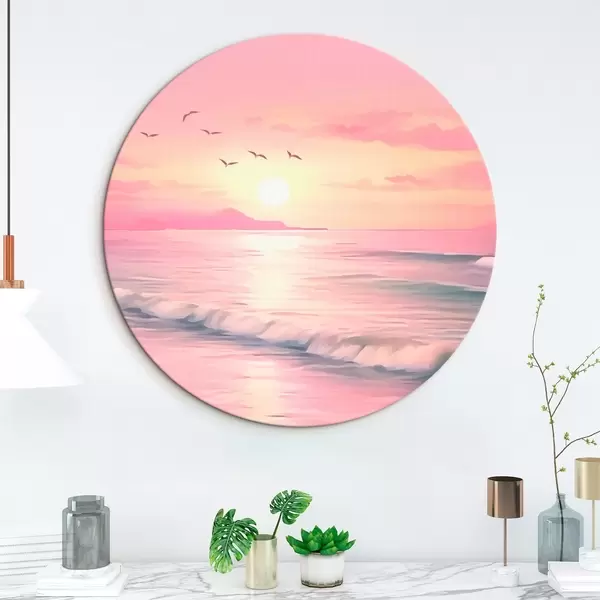 Cuadros redondos Puesta de sol rosada sobre el mar r45955