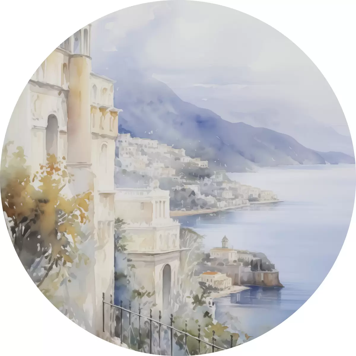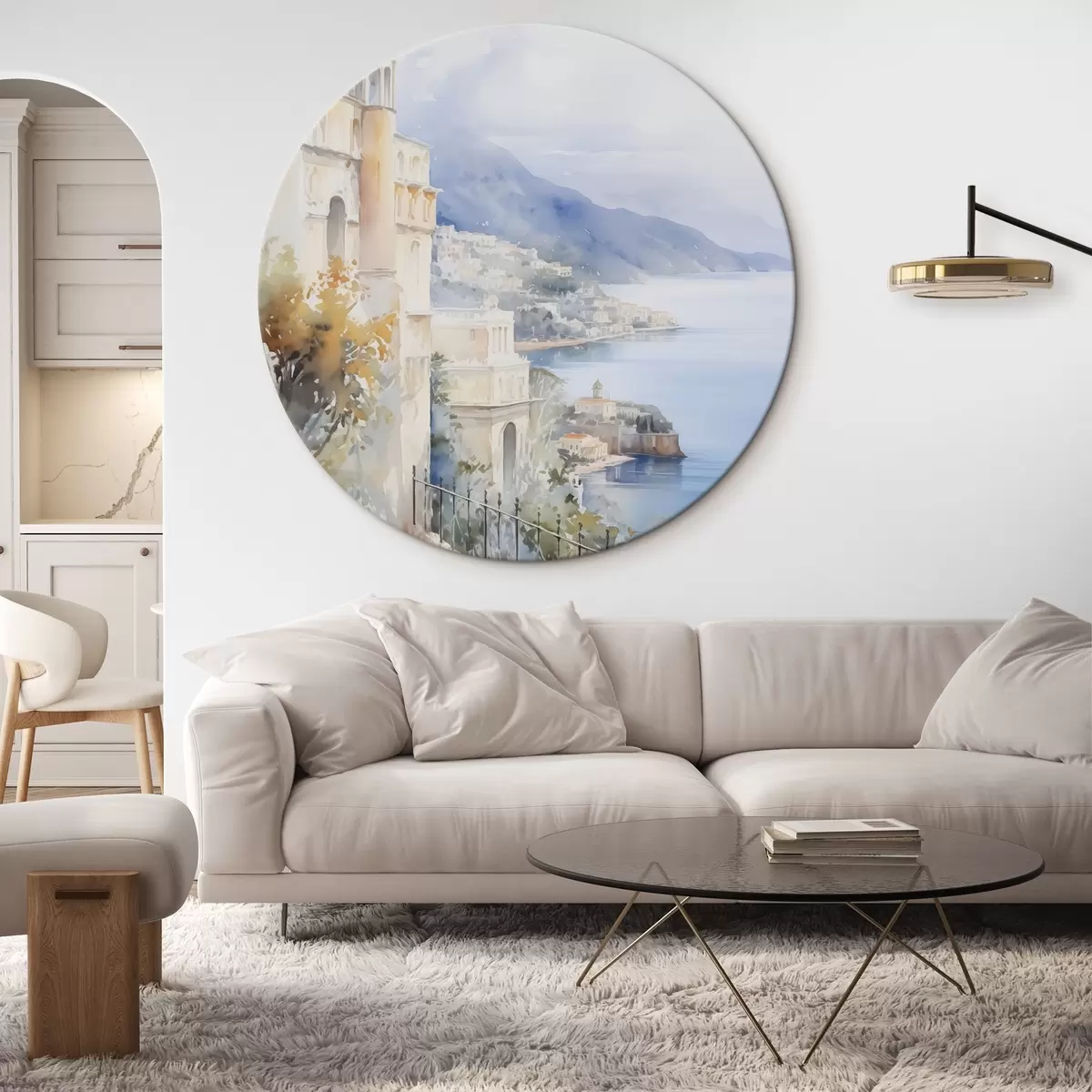 Cuadros redondos Bahía cerca de la ciudad imitación de acuarela r45979