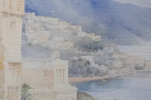 Foto Bahía cerca de la ciudad imitación de acuarela Nr r45979