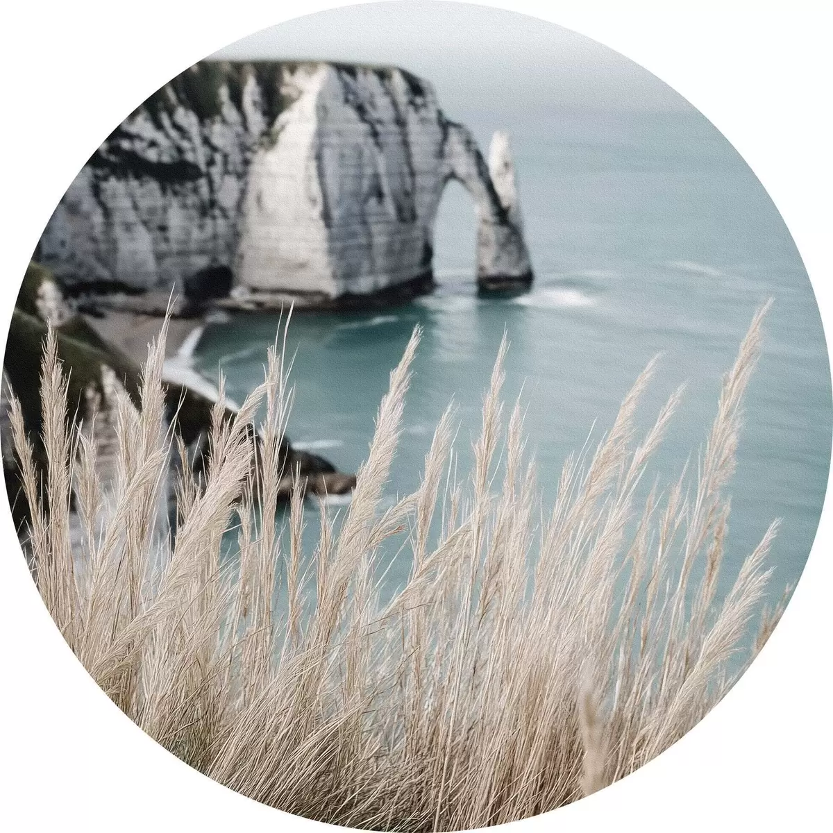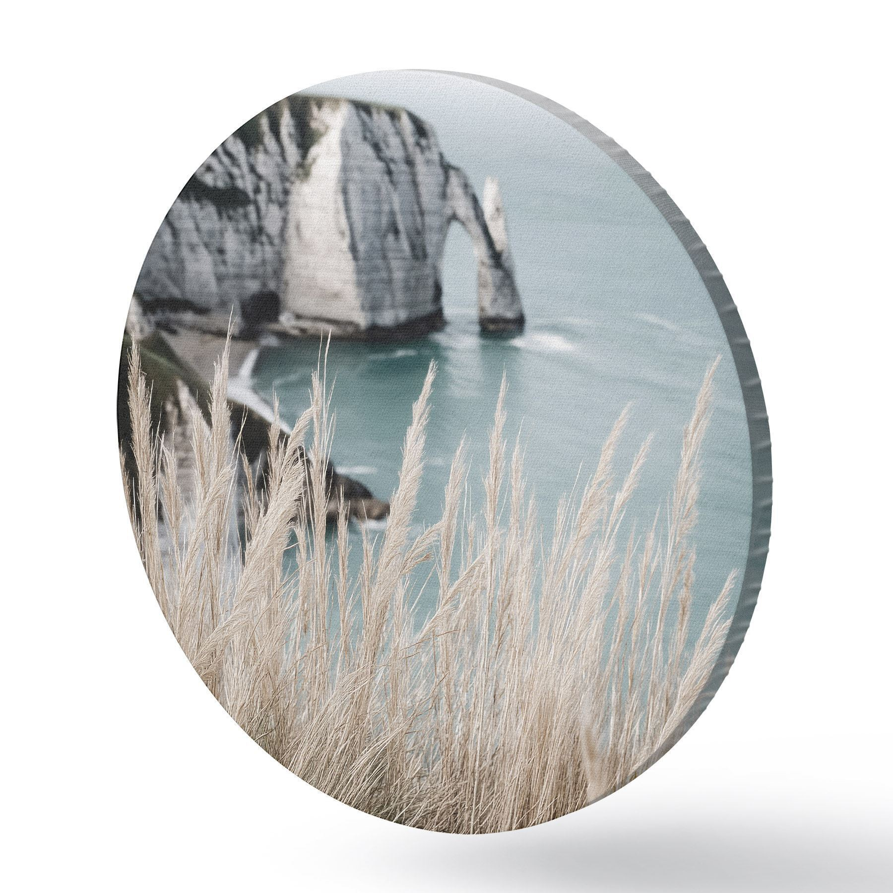 Cuadros redondos Mar y arco de roca, vista a través de la hierba seca r46142